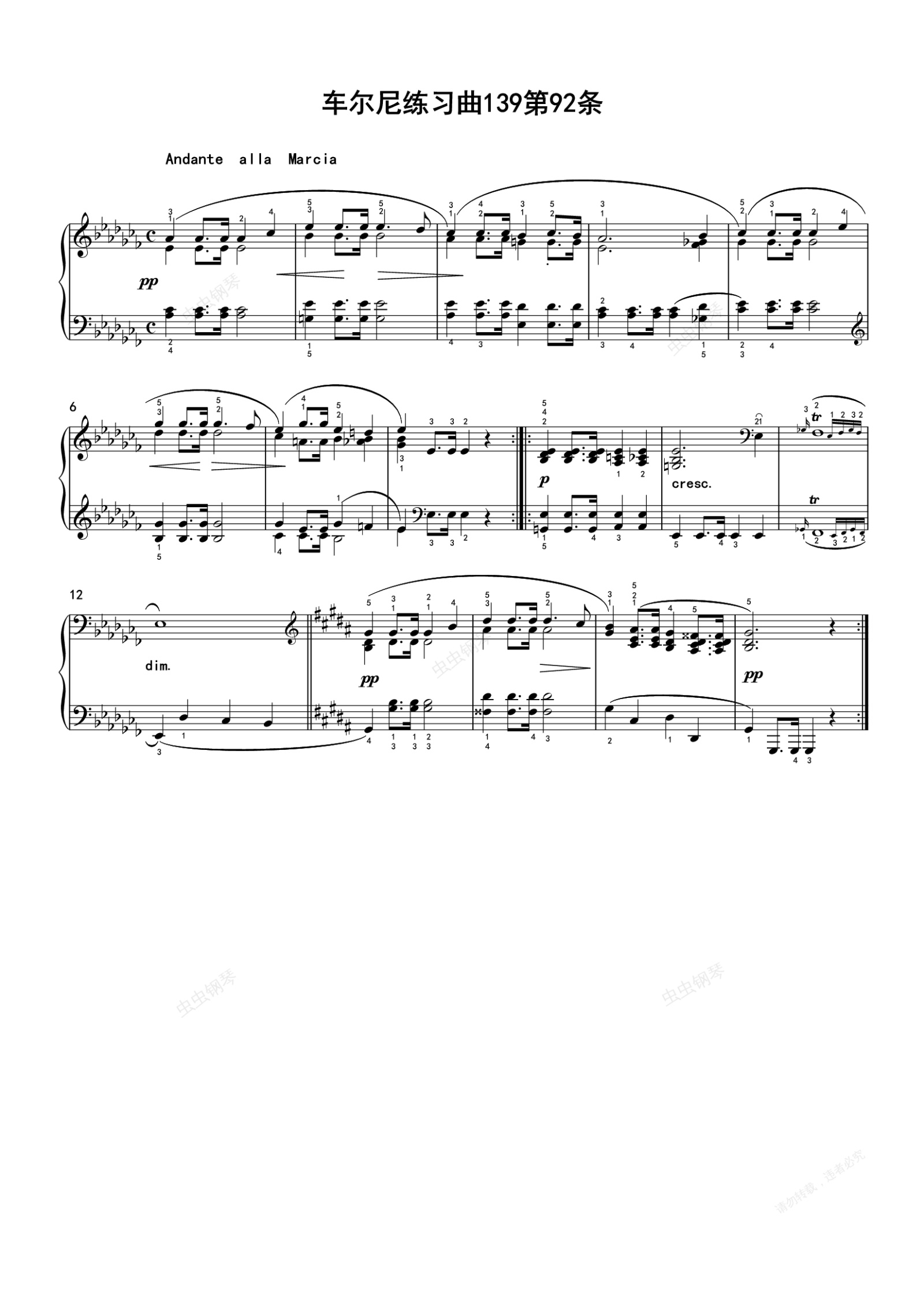 钢琴谱:车尔尼练习曲139第92条