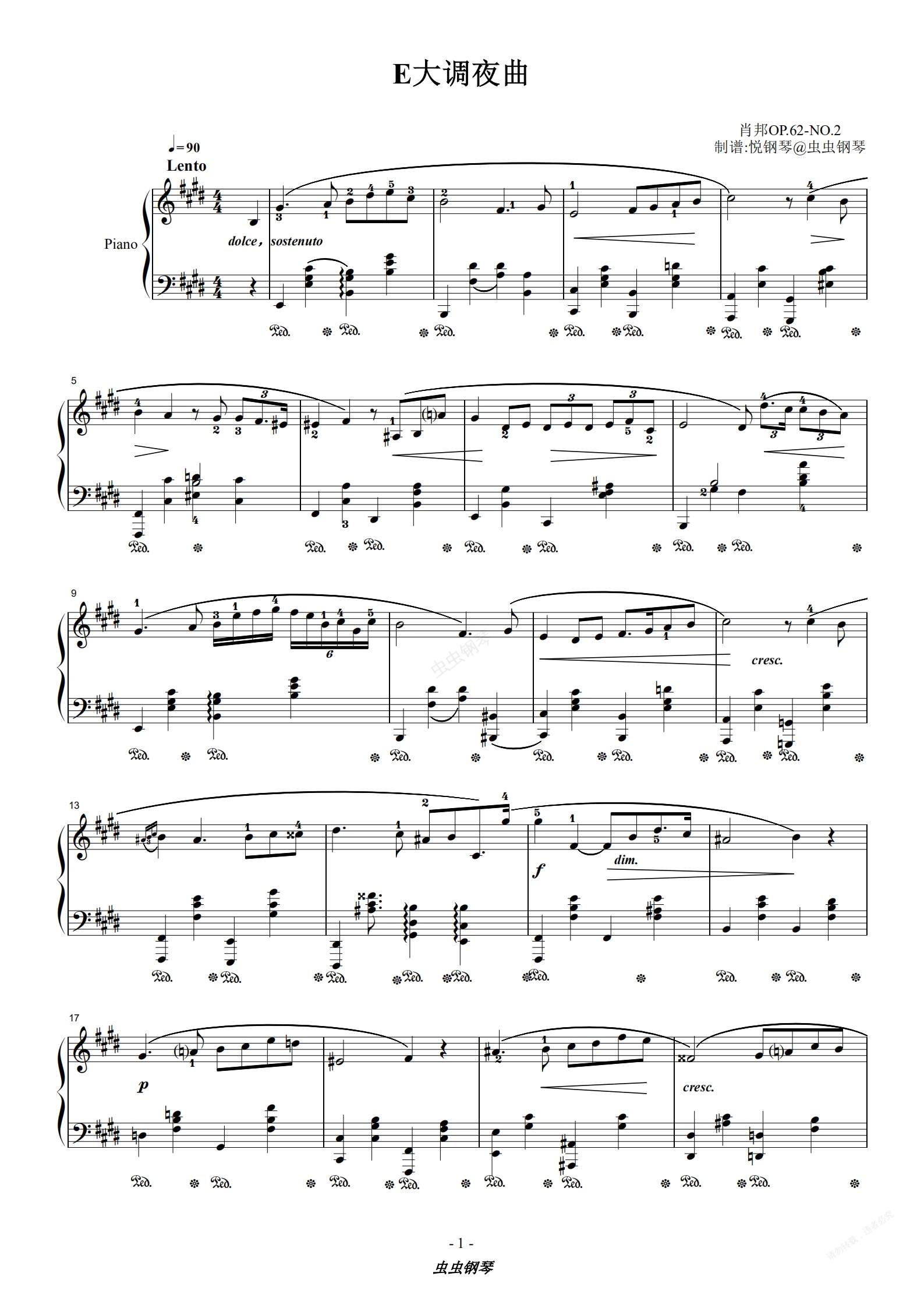 钢琴谱:肖邦 E大调夜曲OP.62-NO.2
