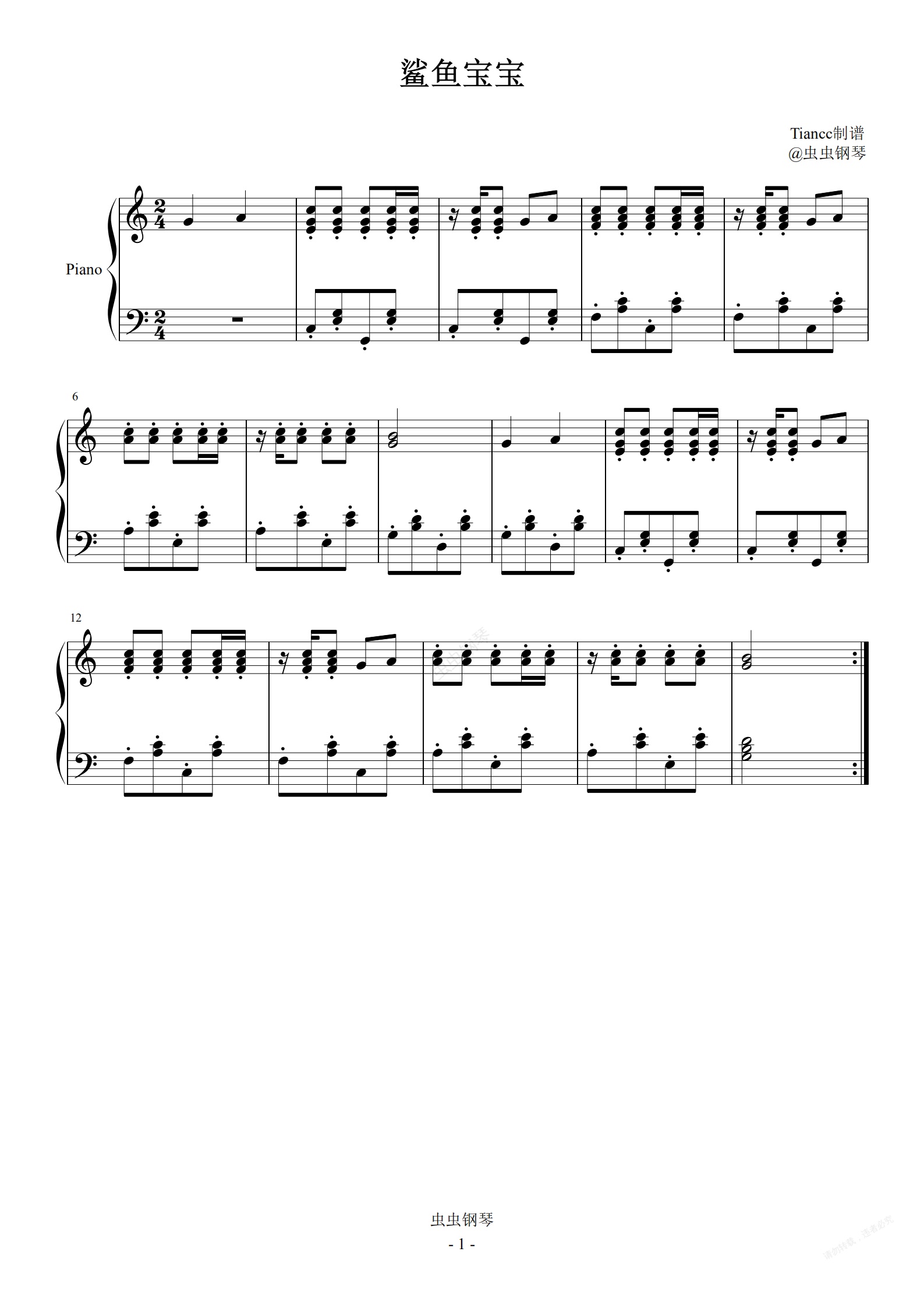 钢琴谱:《鲨鱼宝宝》神奇儿歌