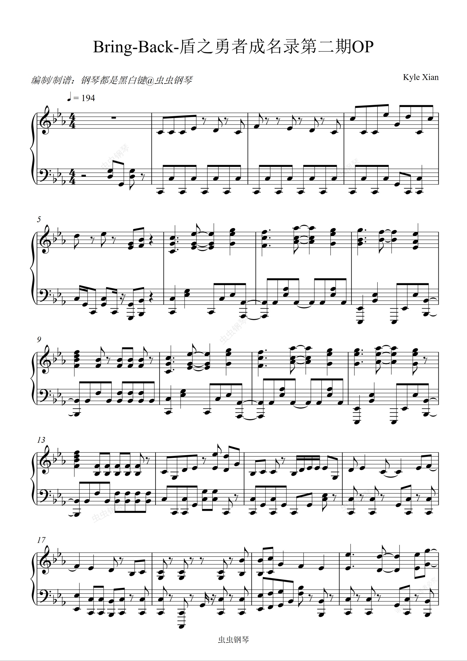 钢琴谱:Bring Back(盾之勇者成名录 第二季 OP)超燃独奏