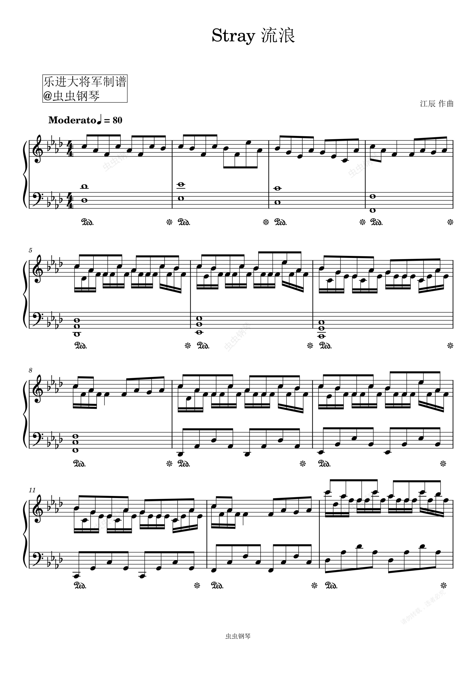 钢琴谱:Stray(流浪)江辰 钢琴纯音乐版