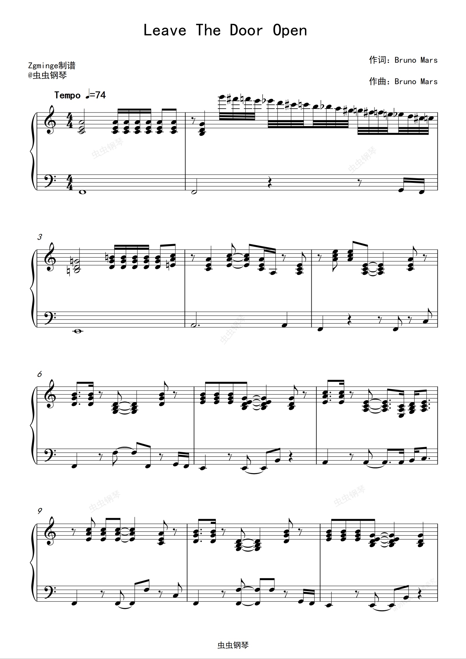 钢琴谱:Leave The Door Open (百分百还原改编)