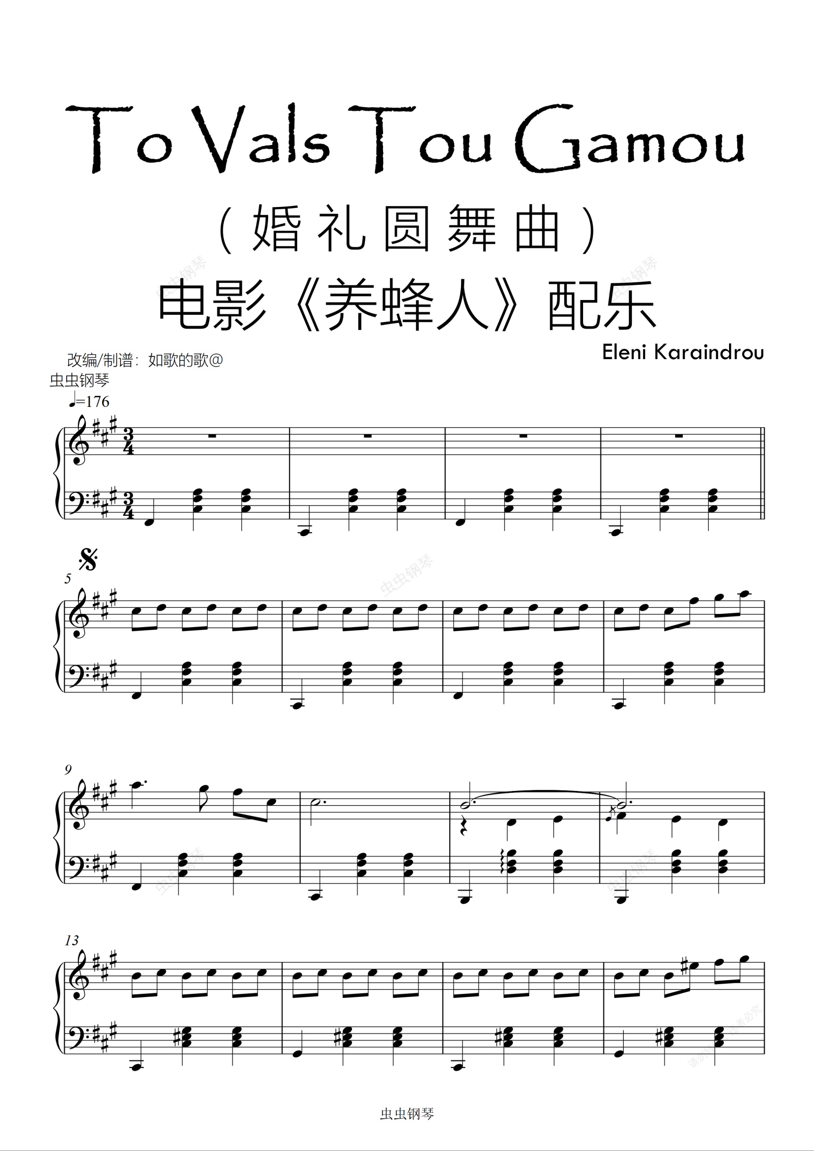 钢琴谱:To Vals Tou Gamou婚礼圆舞曲-养蜂人电影原声