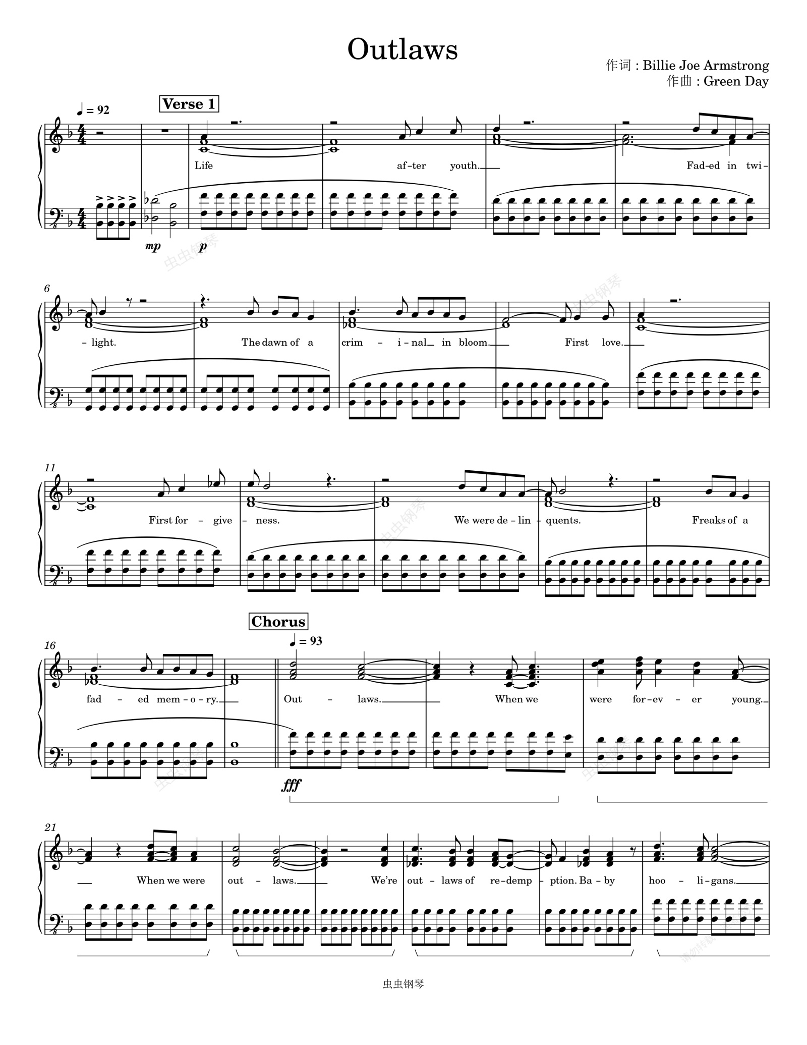 钢琴谱:Outlaws-Green Day
