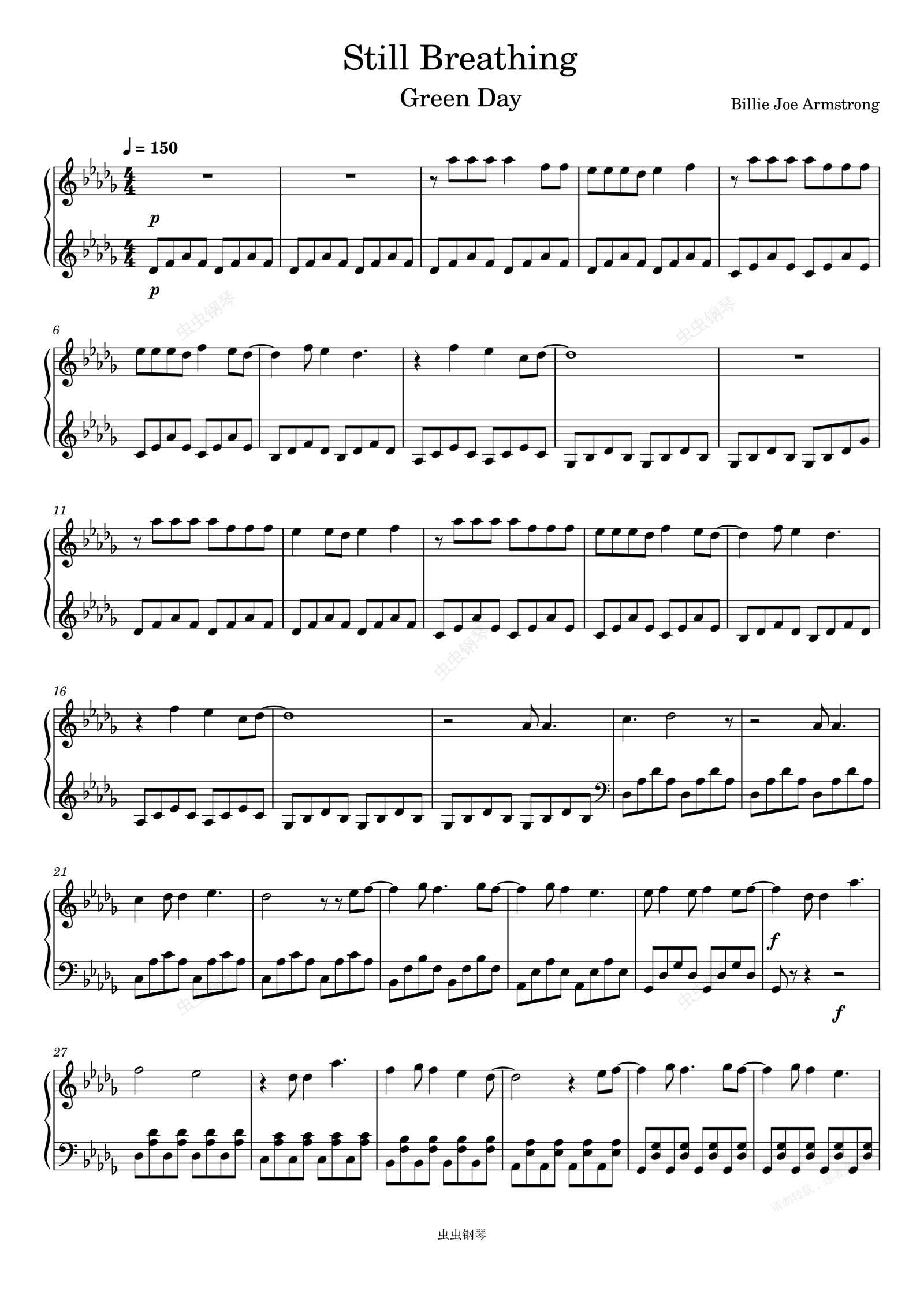 钢琴谱:Still Breathing-Green Day