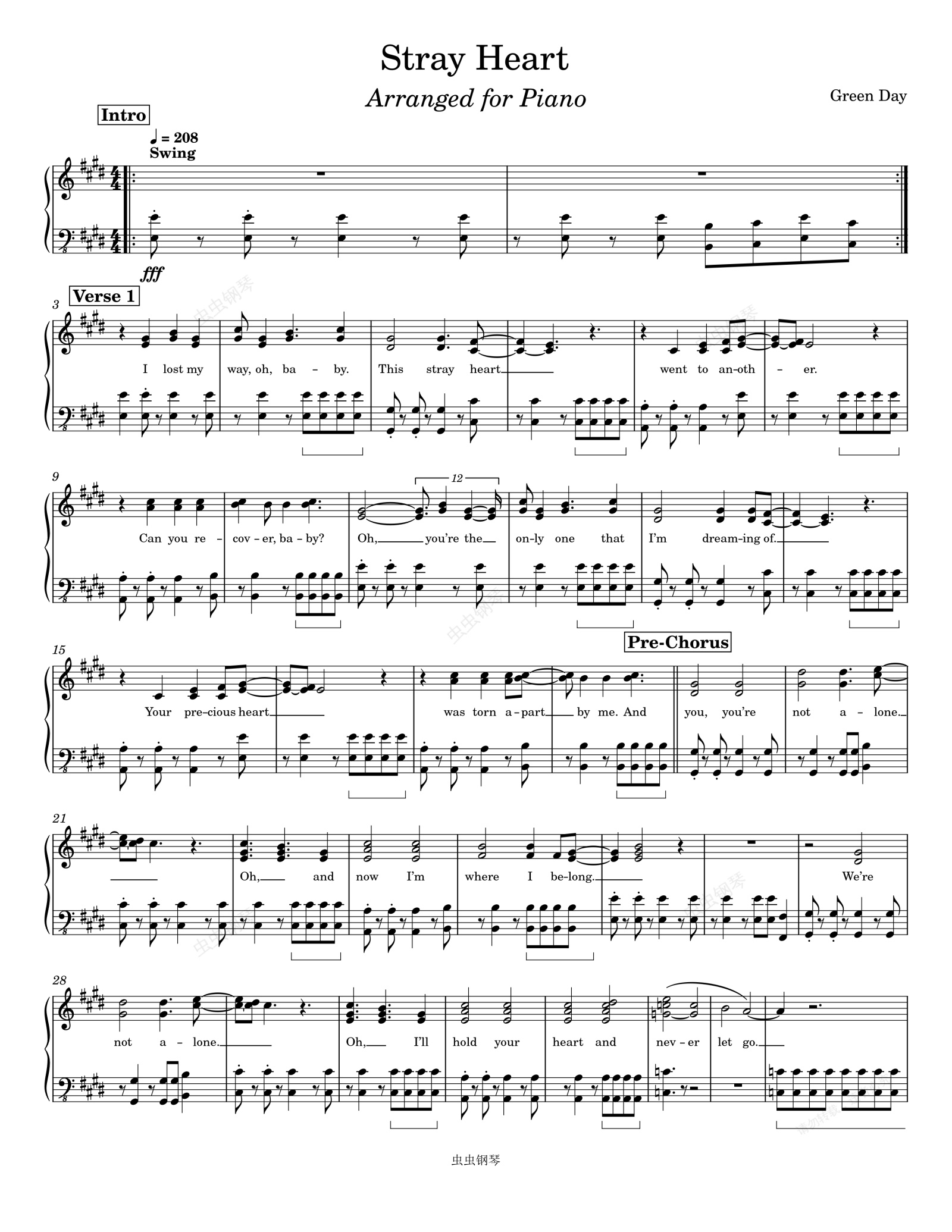 钢琴谱:Stray Heart-Green Day