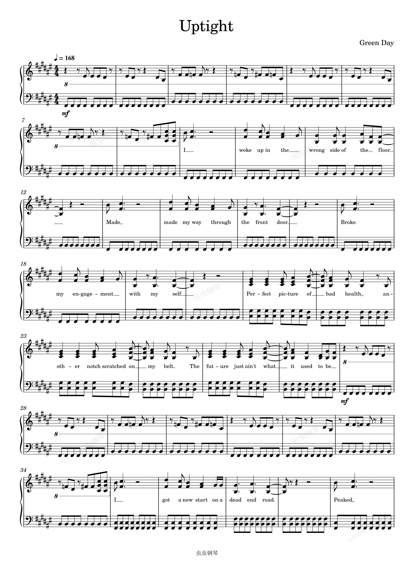 钢琴谱:Uptight-Green Day