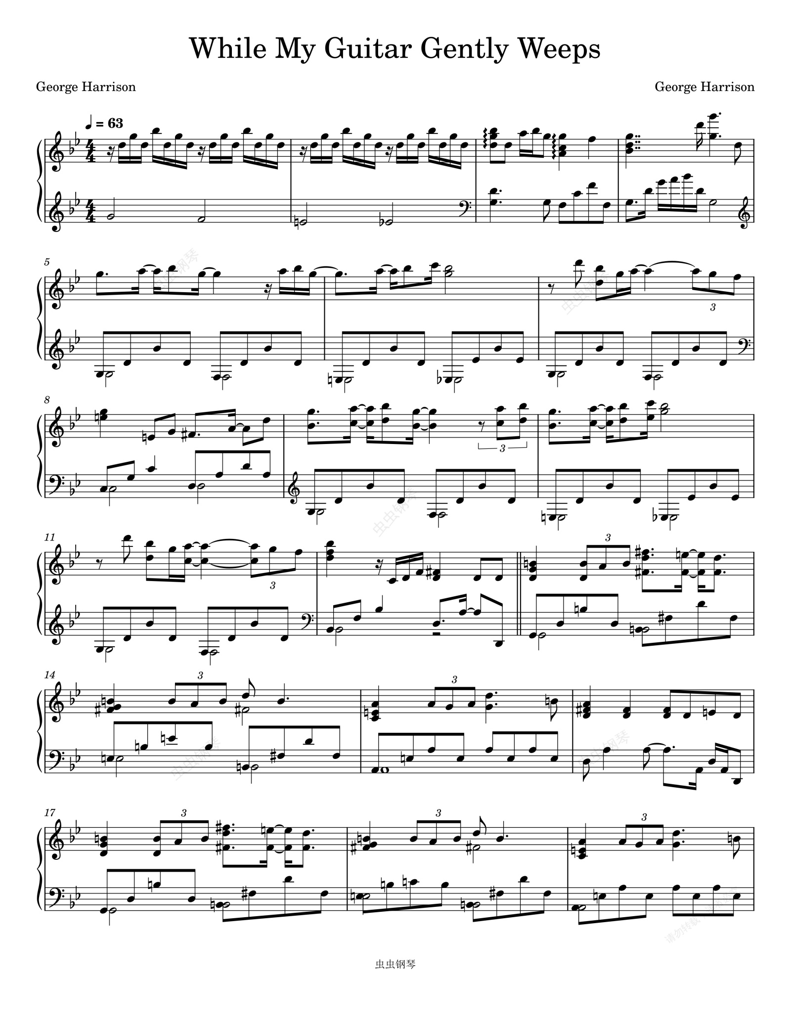 钢琴谱:While My Guitar Gently Weeps-The Beatles