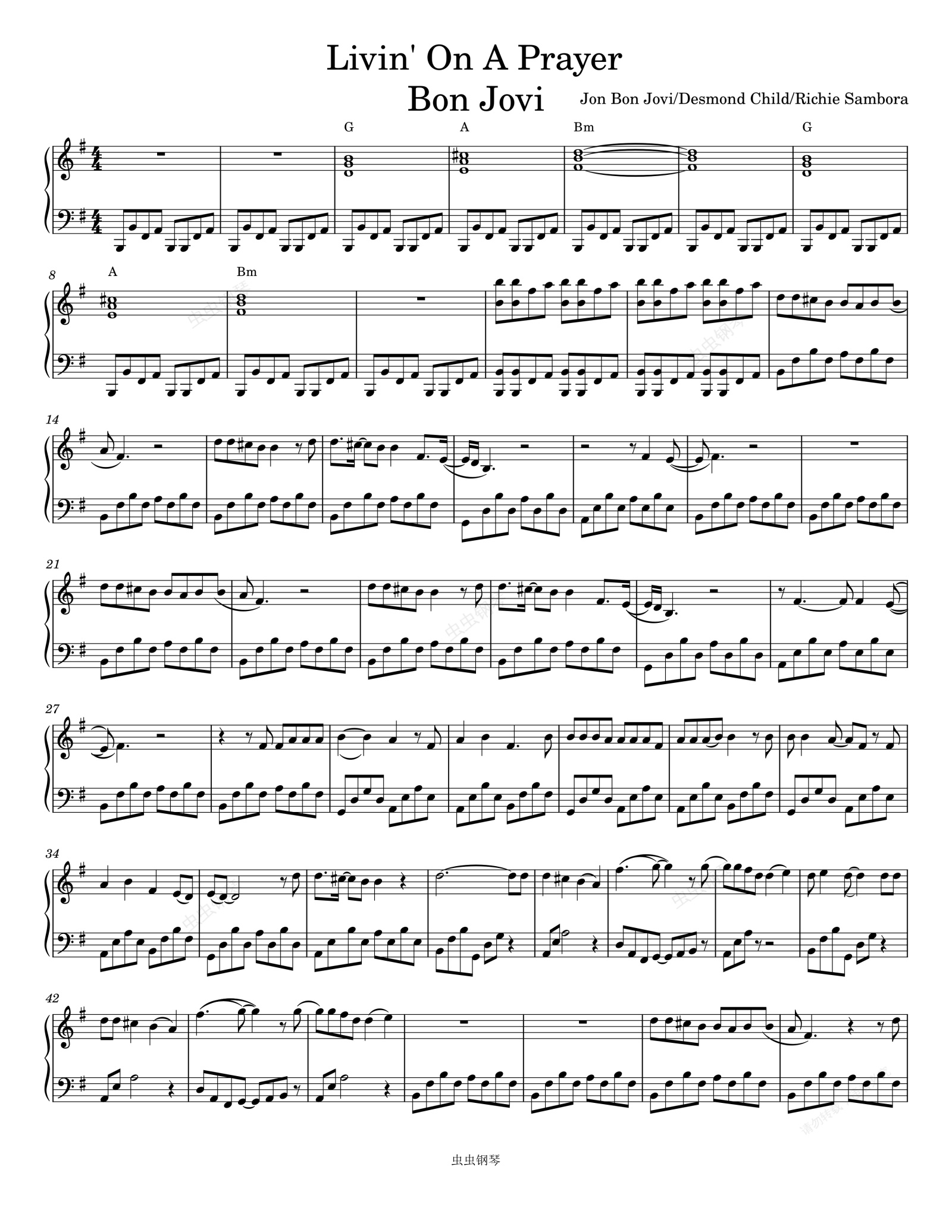 钢琴谱:Livin' On A Prayer-Bon Jovi