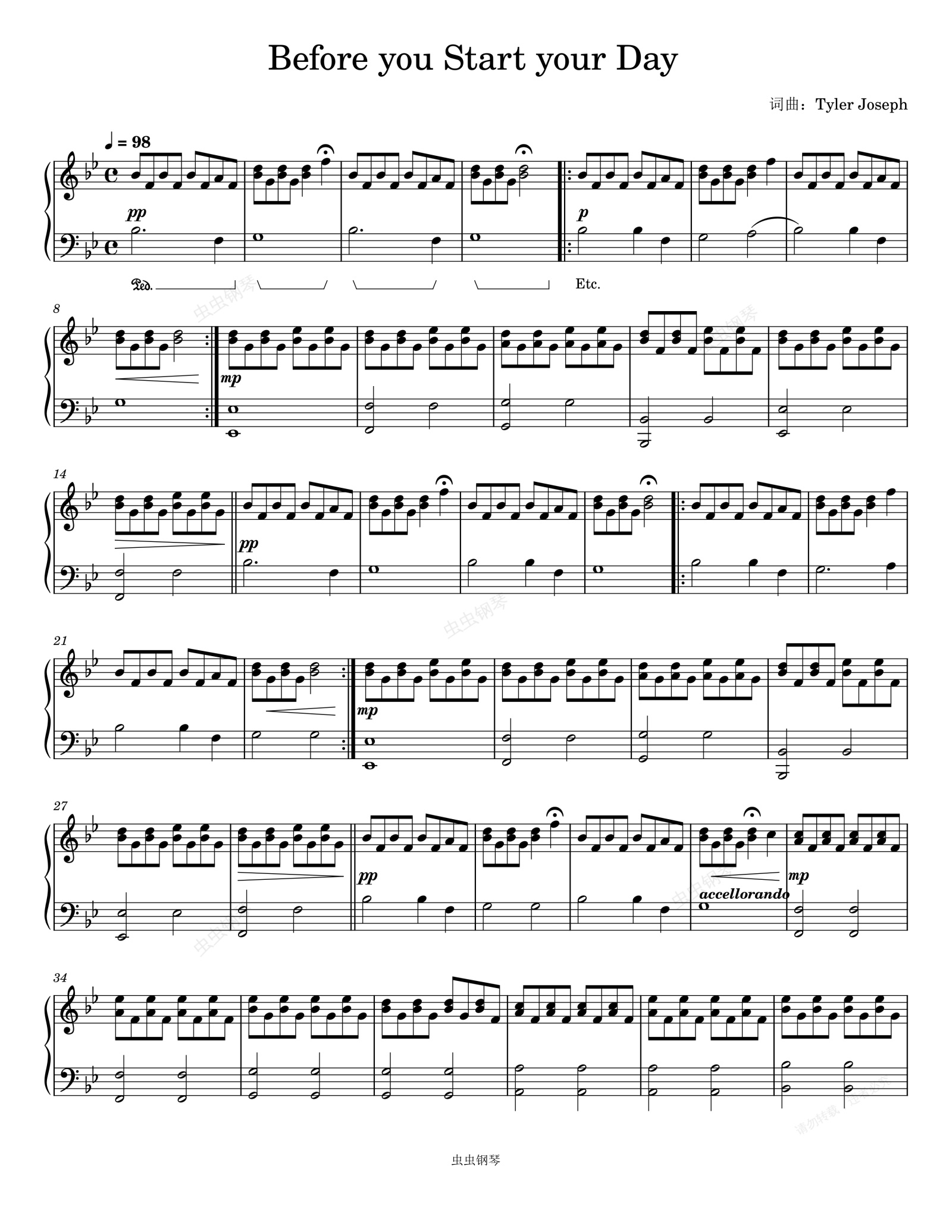 钢琴谱:Before You Start Your Day-Twenty One Pilots