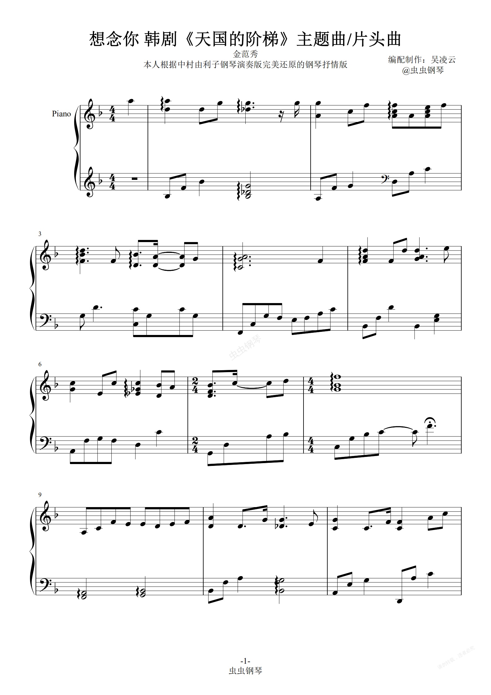 钢琴谱:想念你 韩剧《天国的阶梯》主题曲/片头曲 吴凌云钢琴独奏版