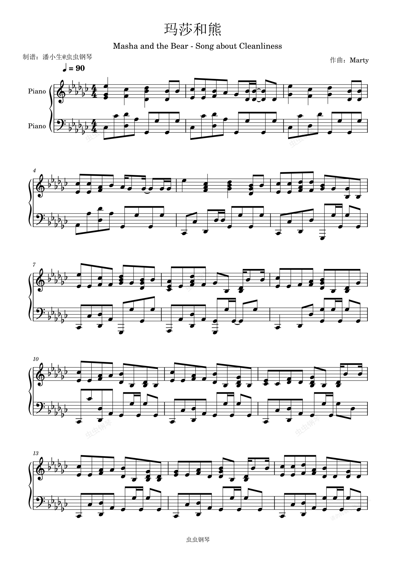 钢琴谱:Masha and the Bear 玛莎和熊 Song about Cleanliness