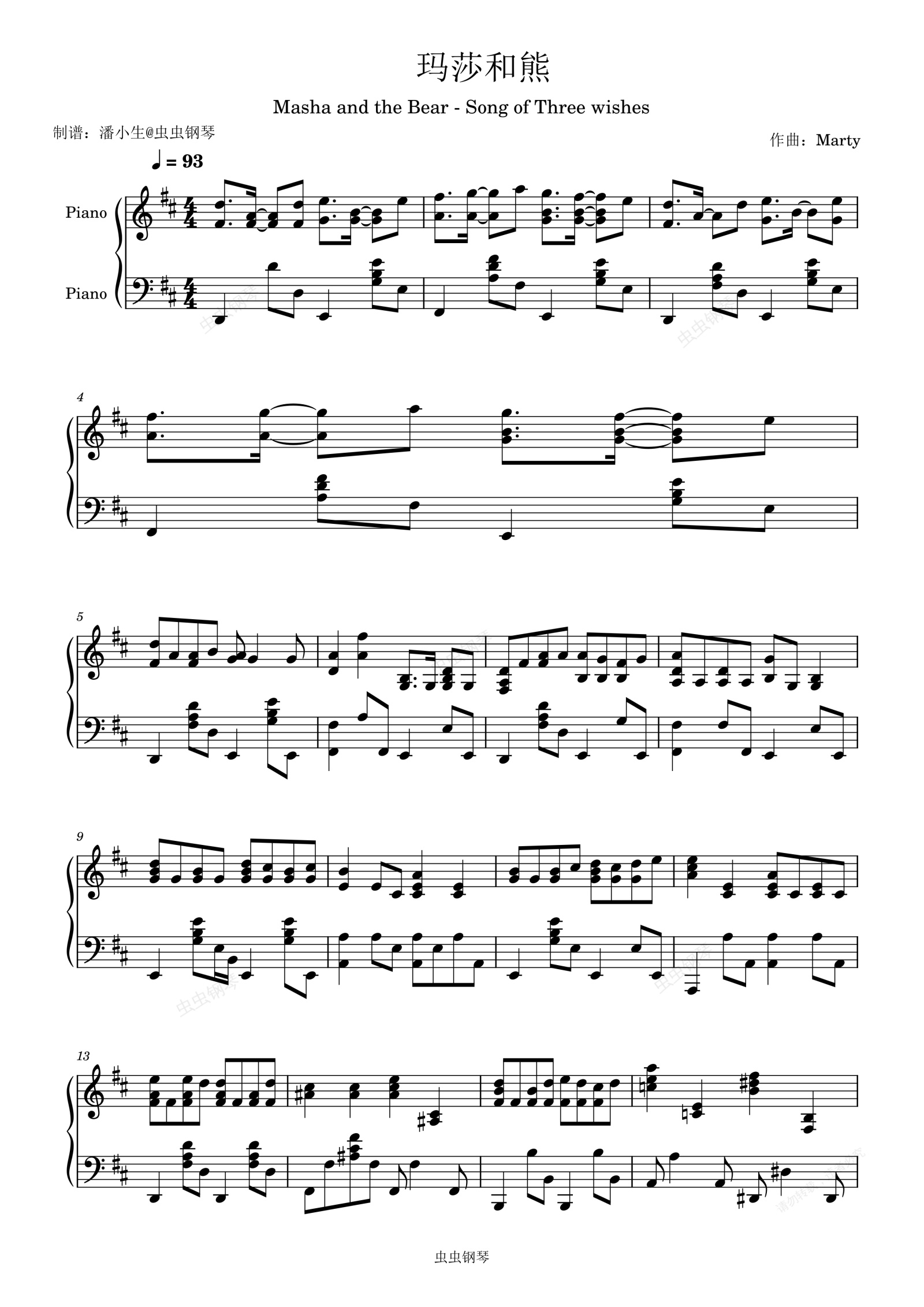 钢琴谱:Masha and the Bear 玛莎和熊 Song of Three wishes