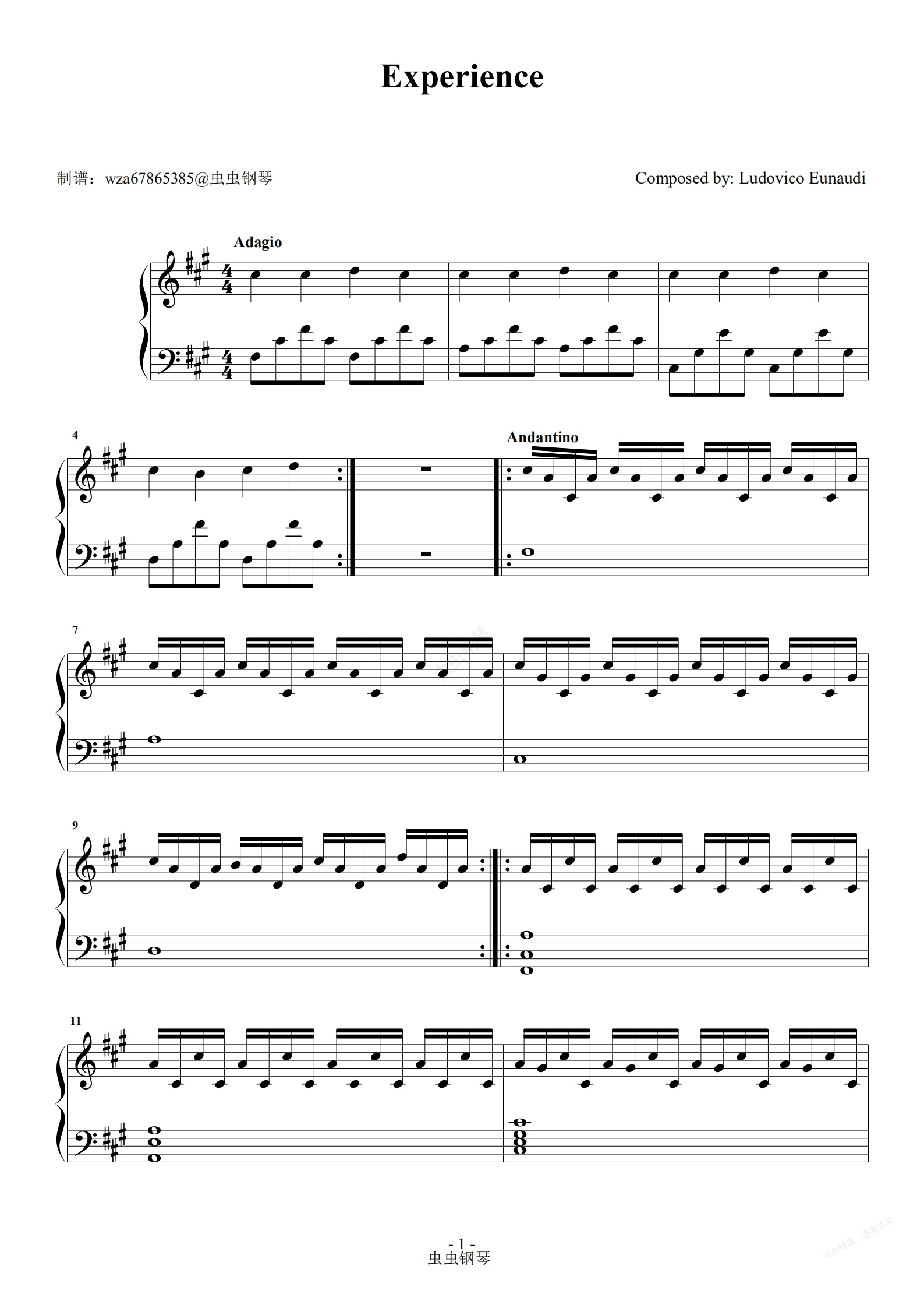 钢琴谱:Experience