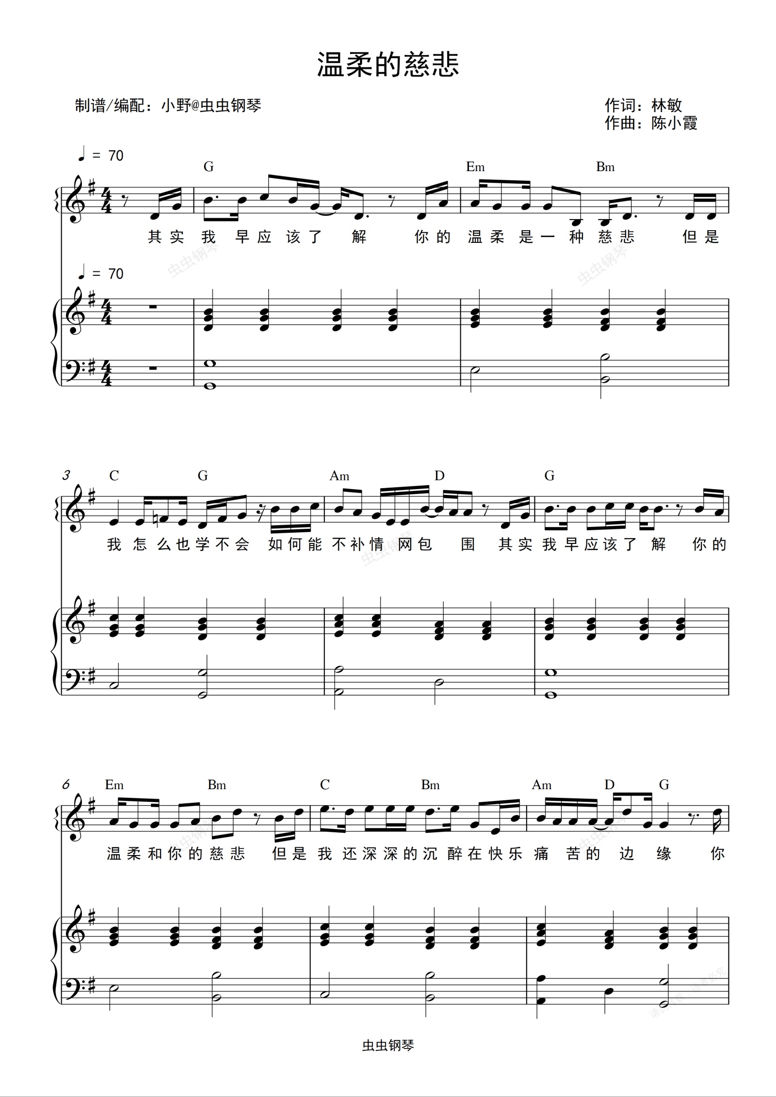 钢琴谱:温柔的慈悲(和弦弹唱版)