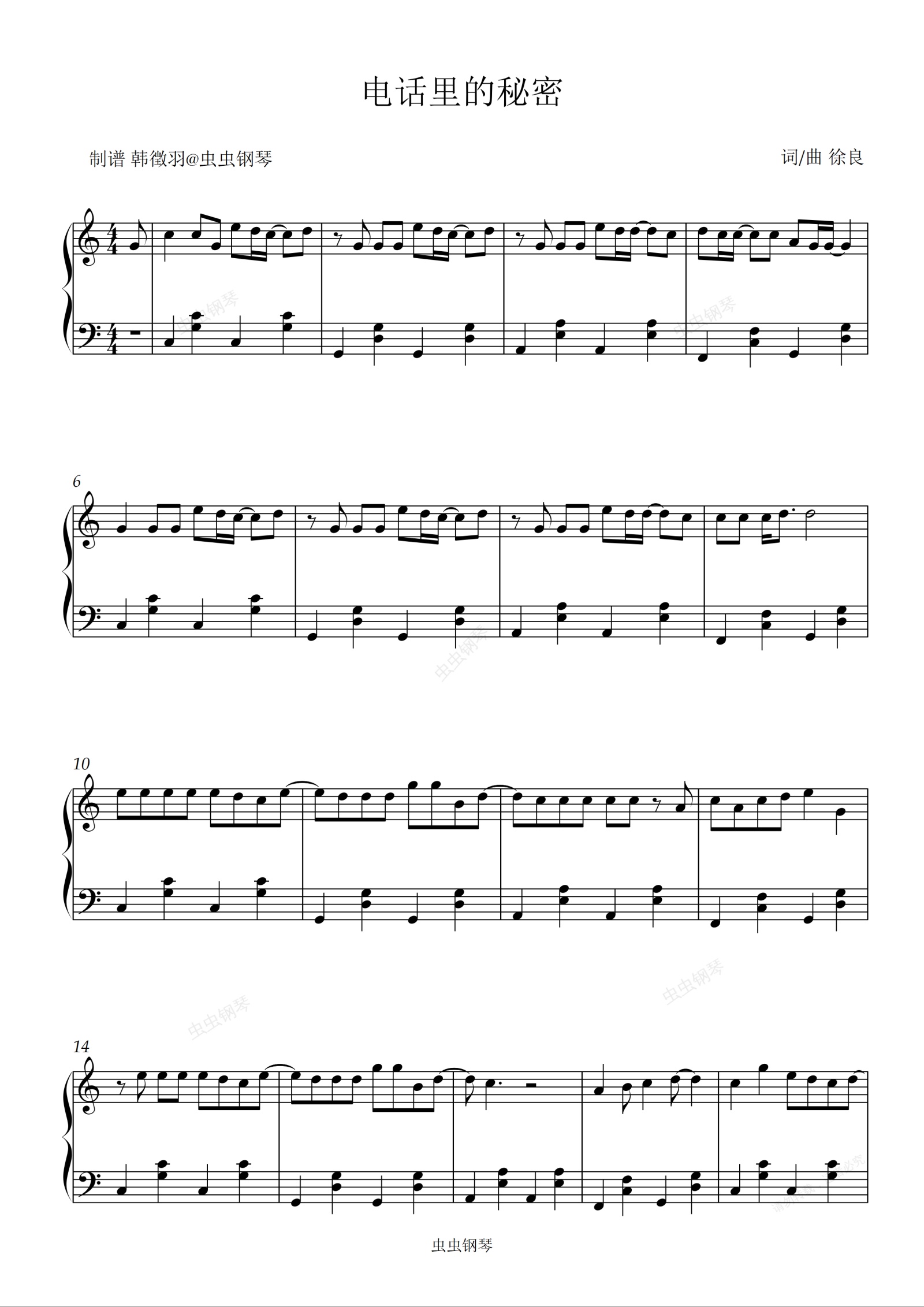 钢琴谱:电话里的秘密 徐良 简单易弹