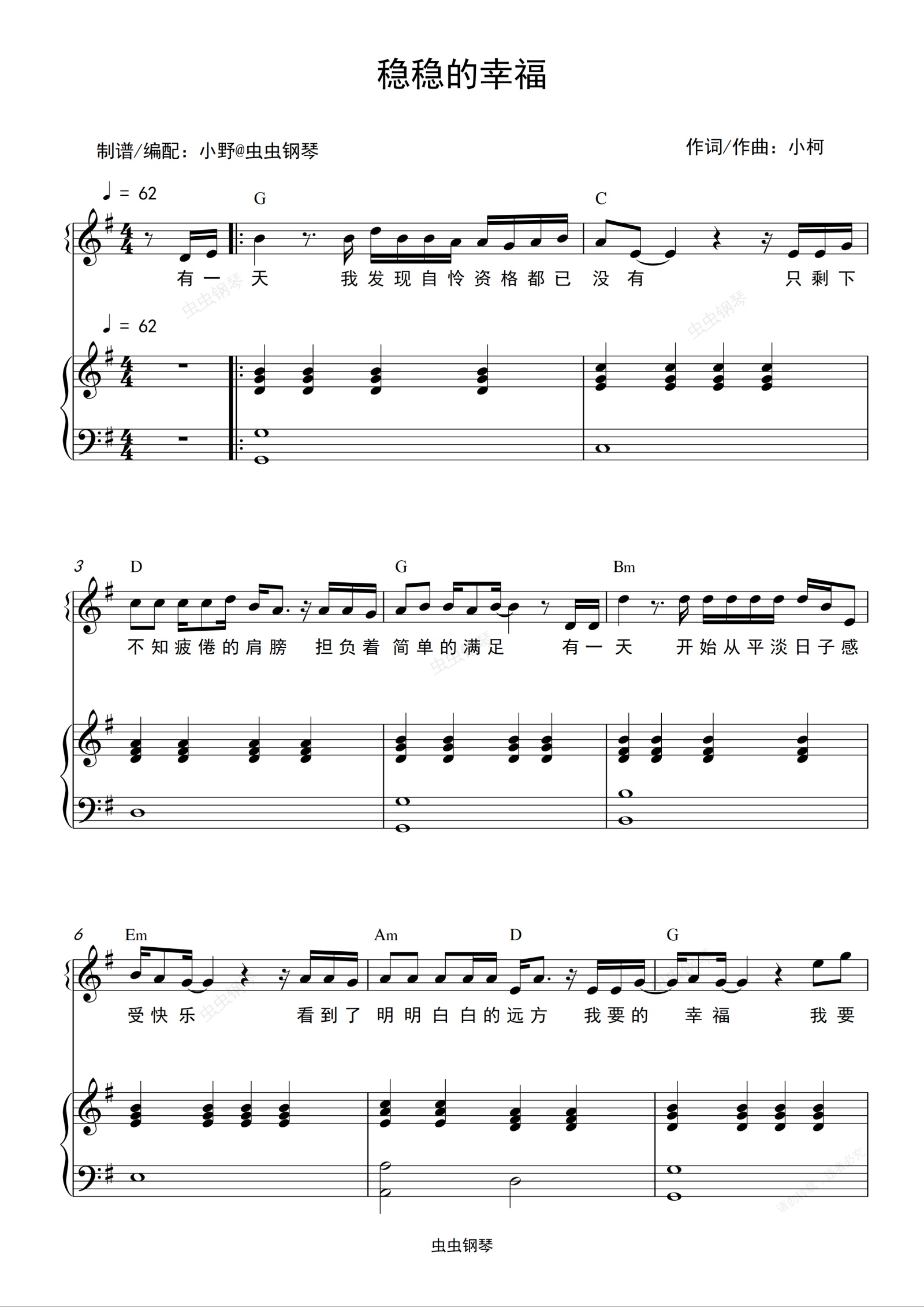 钢琴谱:稳稳的幸福(和弦弹唱版)