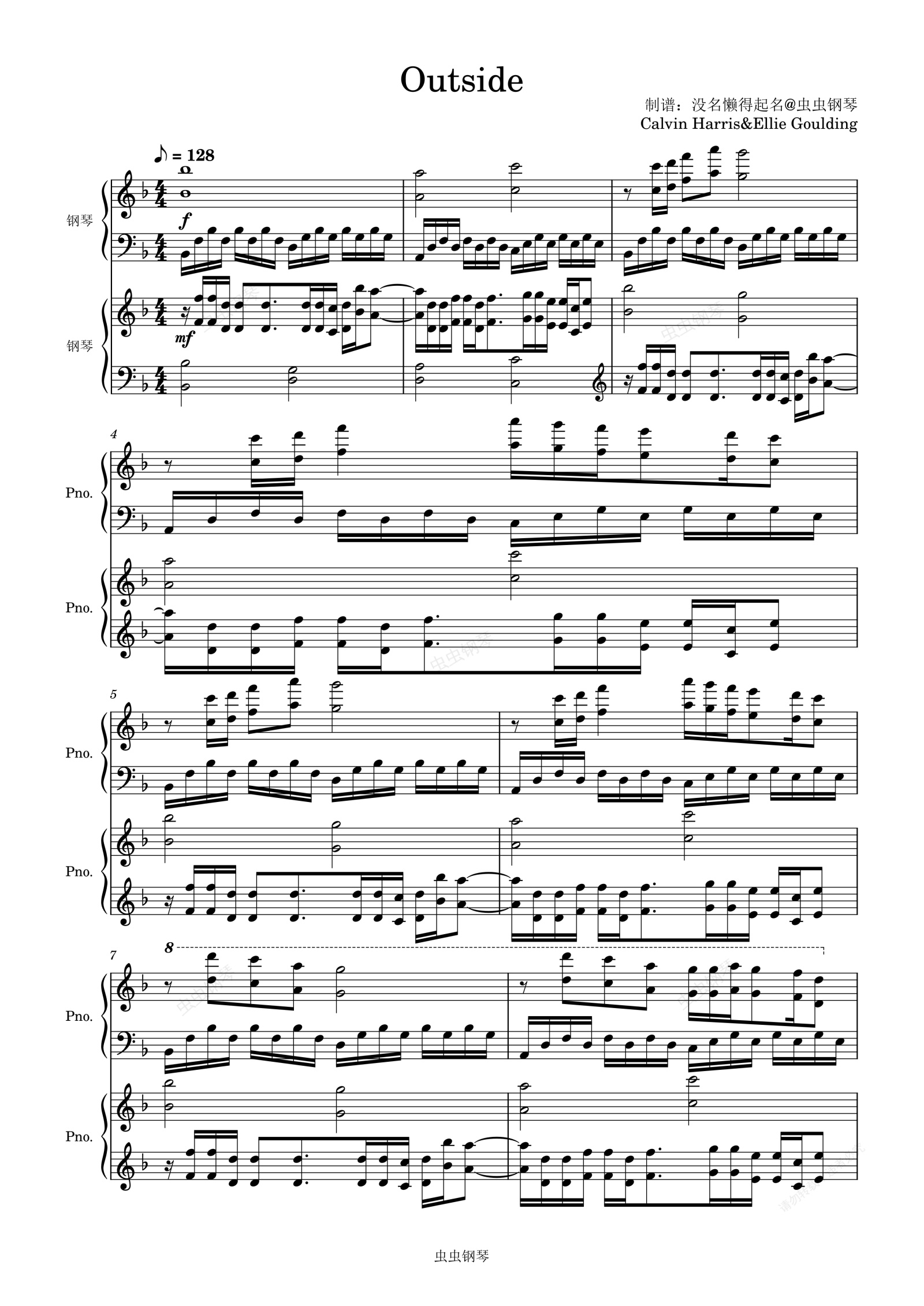 钢琴谱:Outside 爆燃版 (Calvin Harris&Ellie Goulding)