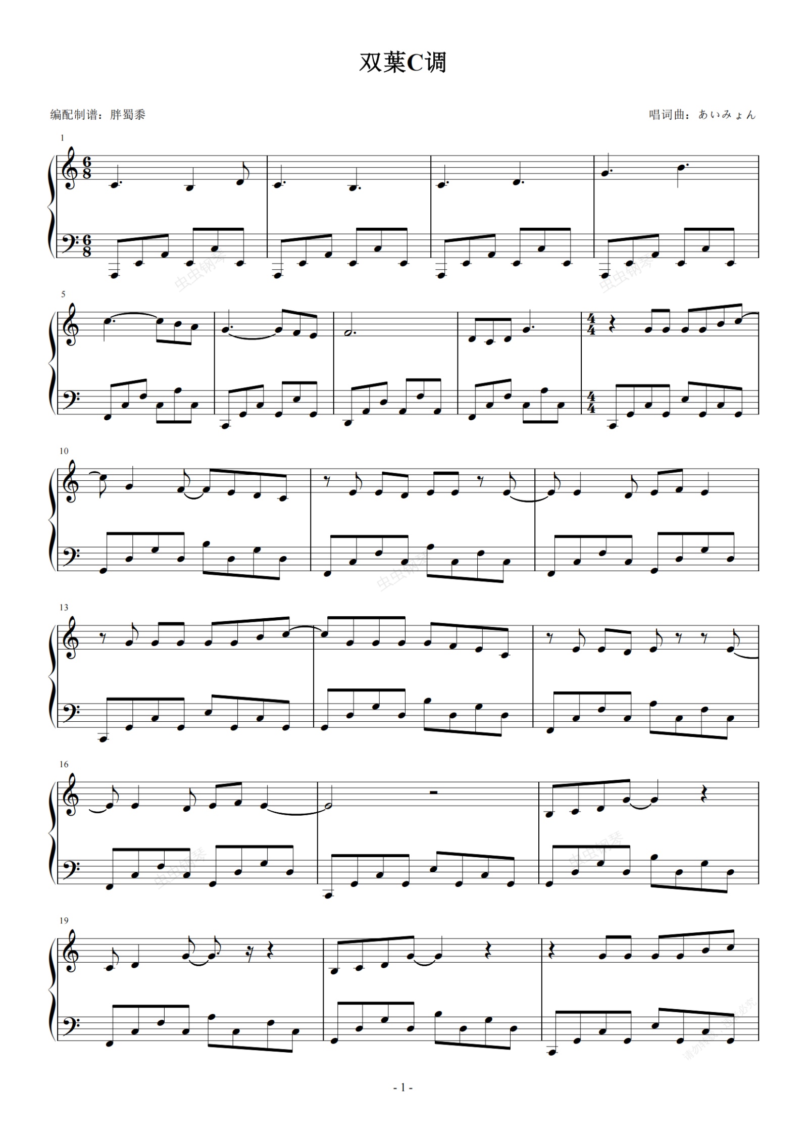 钢琴谱:あいみょんaimyon-双葉双叶C调-爱缪