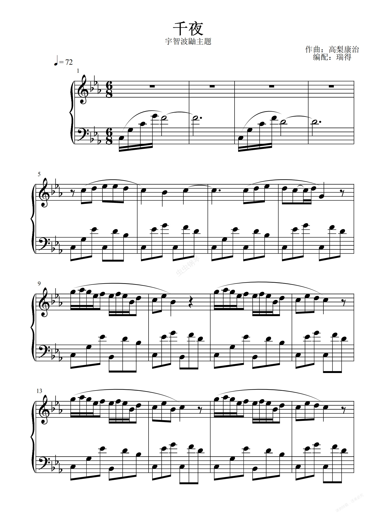 钢琴谱:《千夜》火影忍者宇智波鼬主题曲