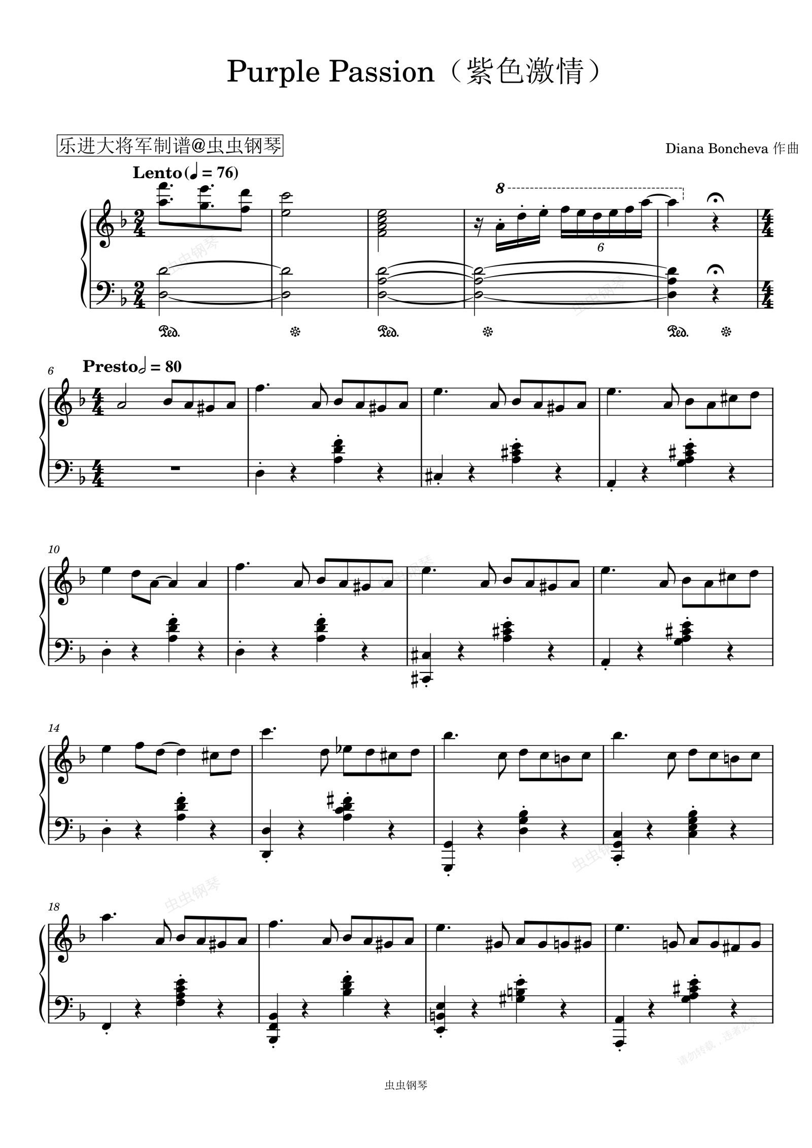 钢琴谱:Purple Passion(紫色激情)还原独奏版