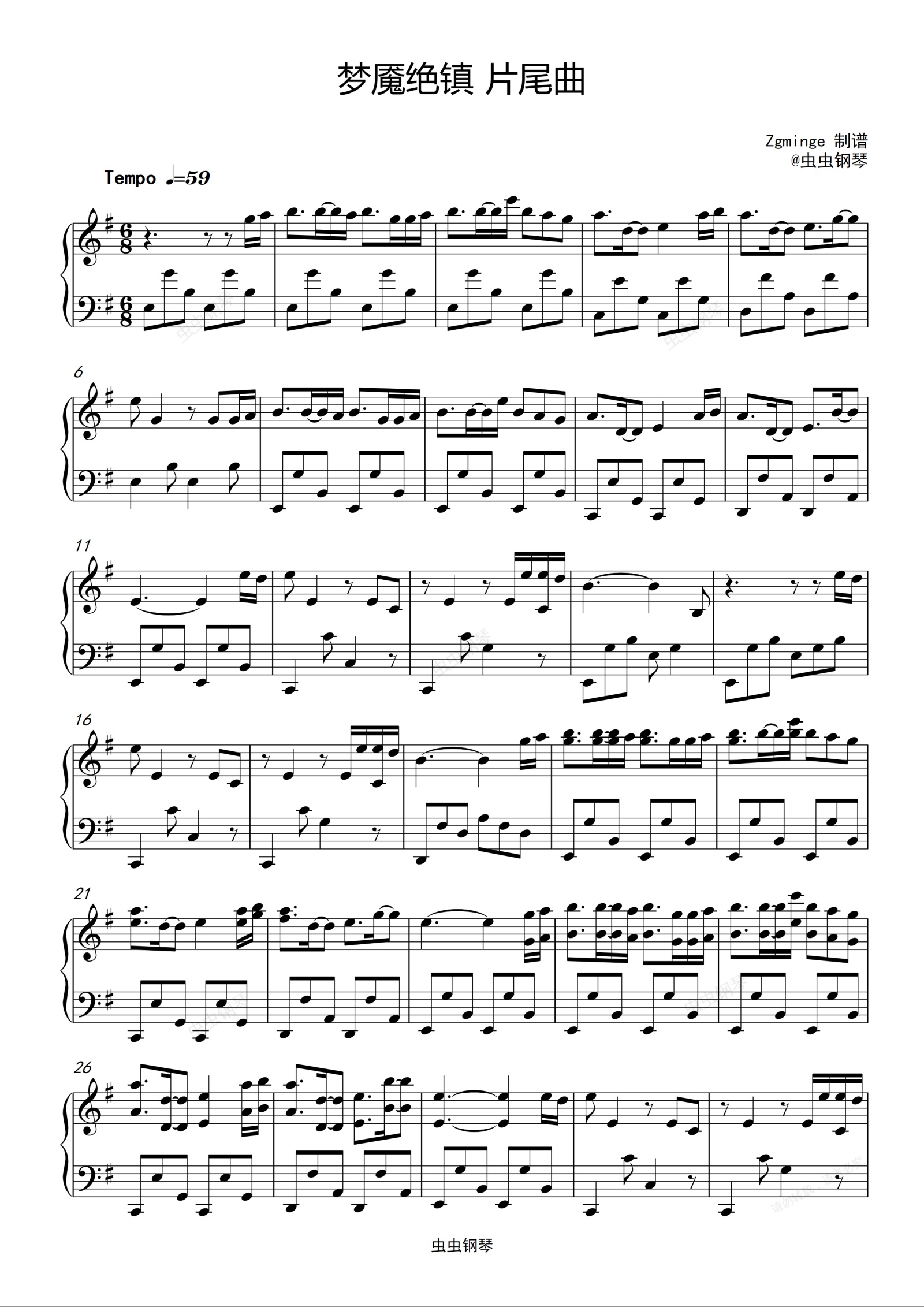 钢琴谱:梦魇绝镇 片尾曲