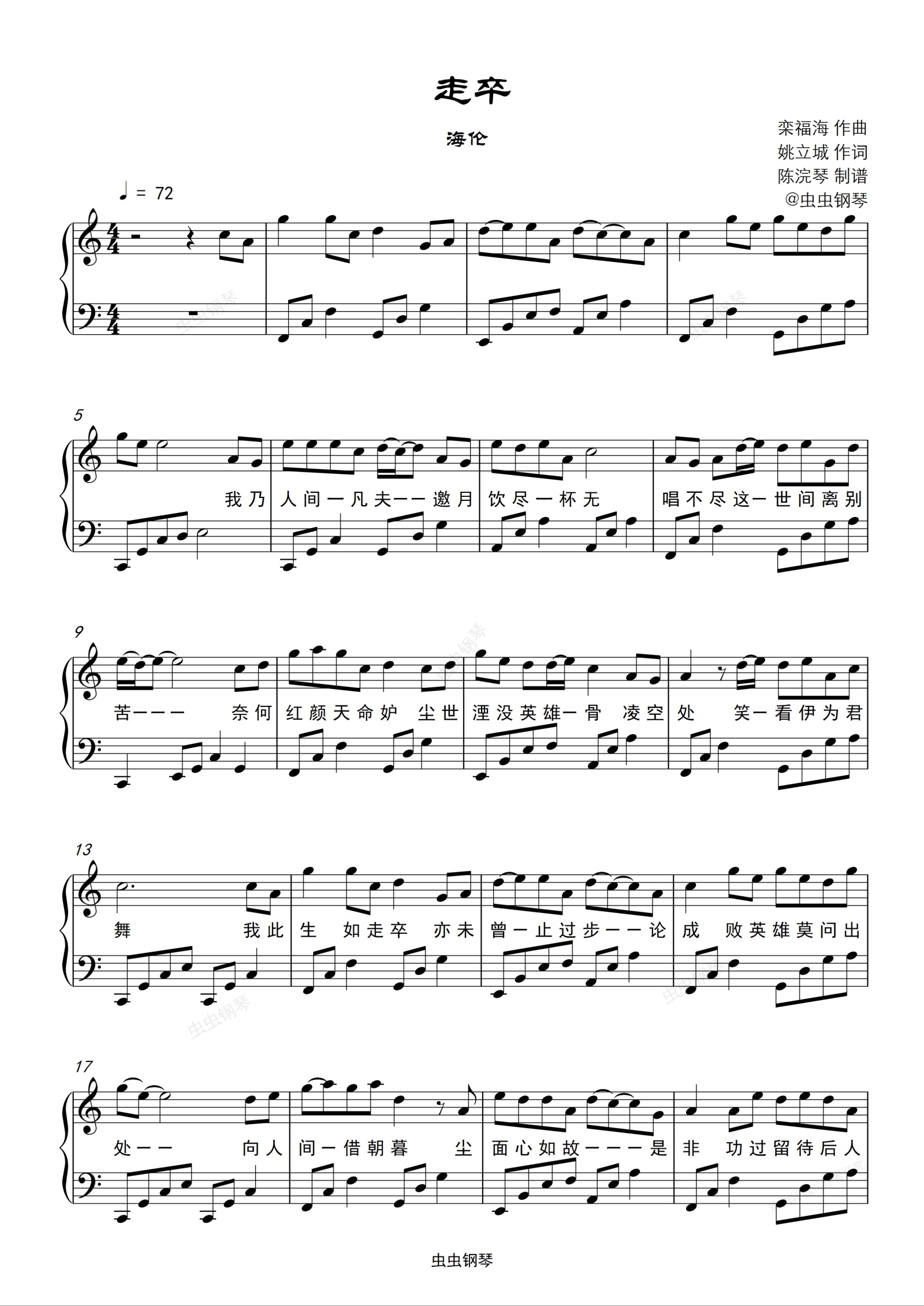 • 小城夏天钢琴谱_G调五线谱_BLI利比
