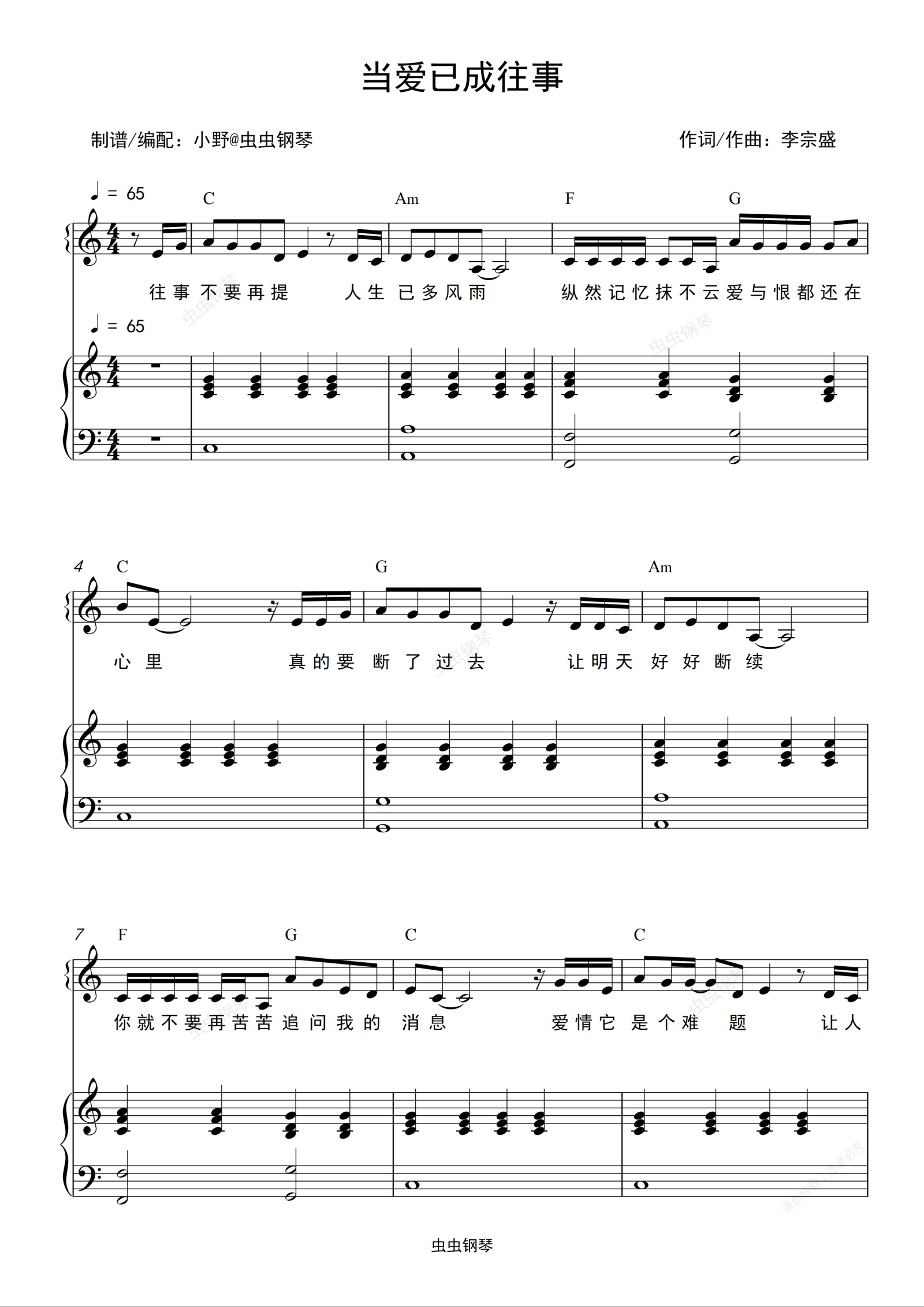 钢琴谱:当爱已成往事(和弦弹唱版)
