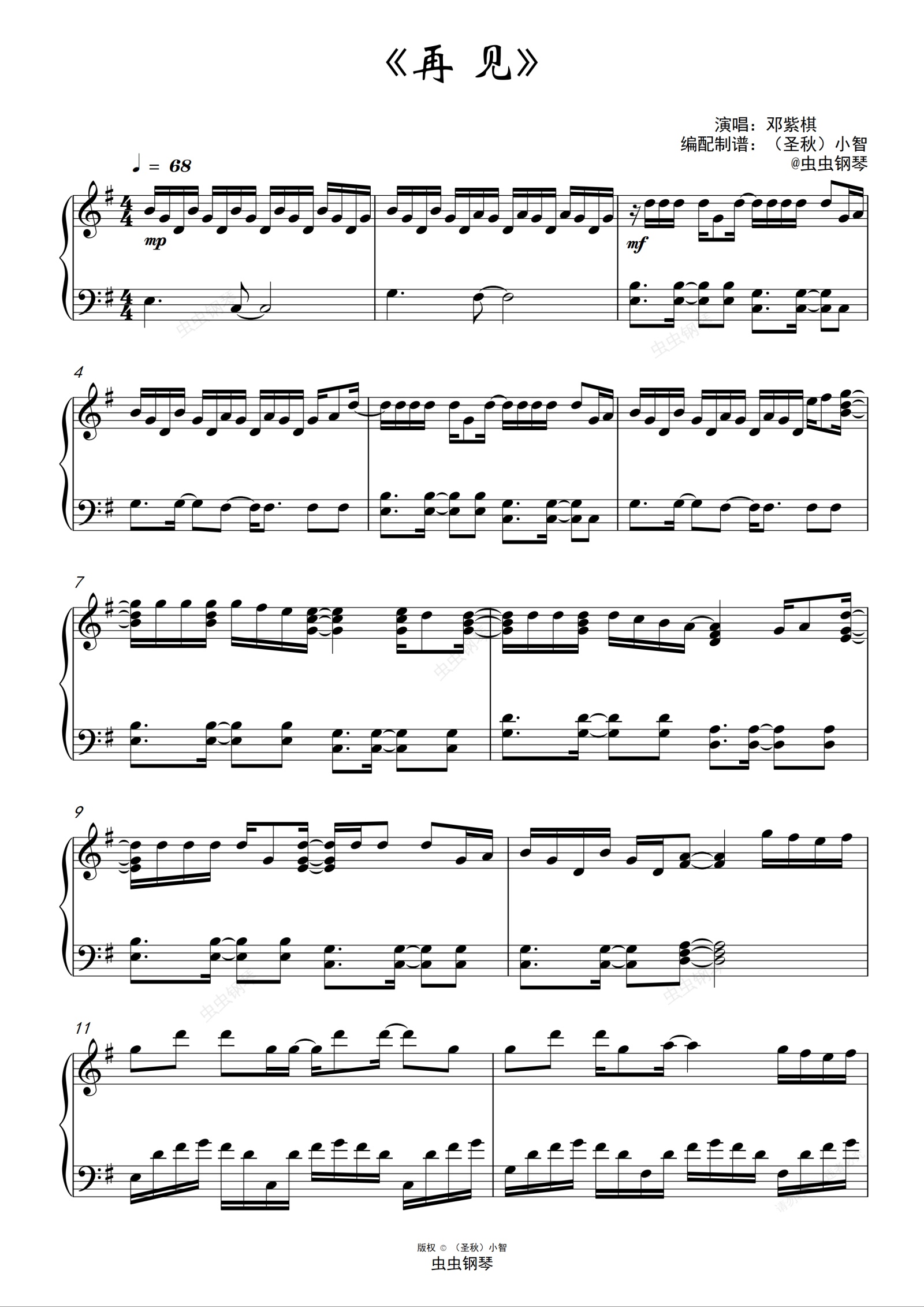 钢琴谱:《再见》高度还原(演奏版)