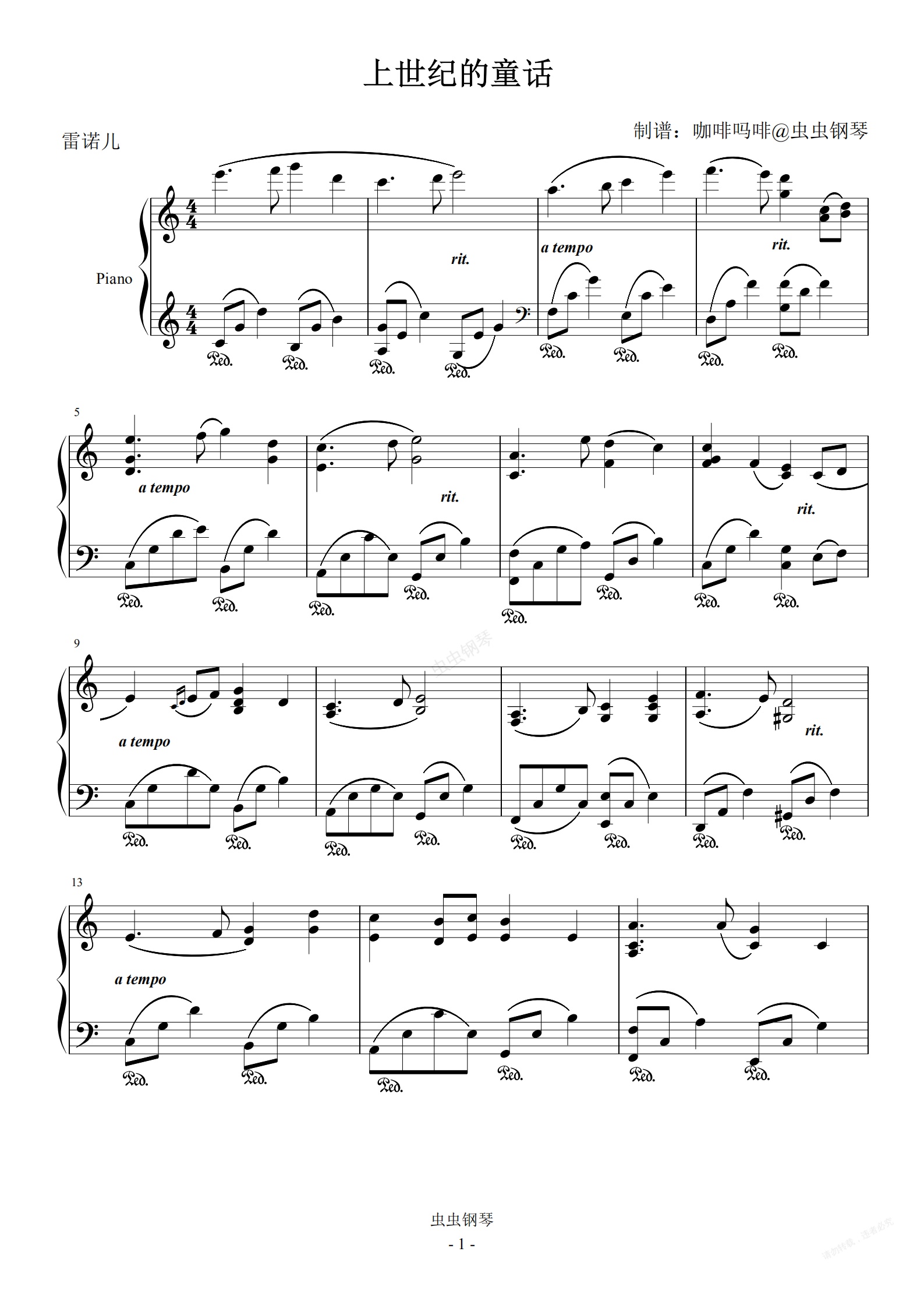 钢琴谱:上世纪的童话 -雷诺儿 C调钢琴独奏谱