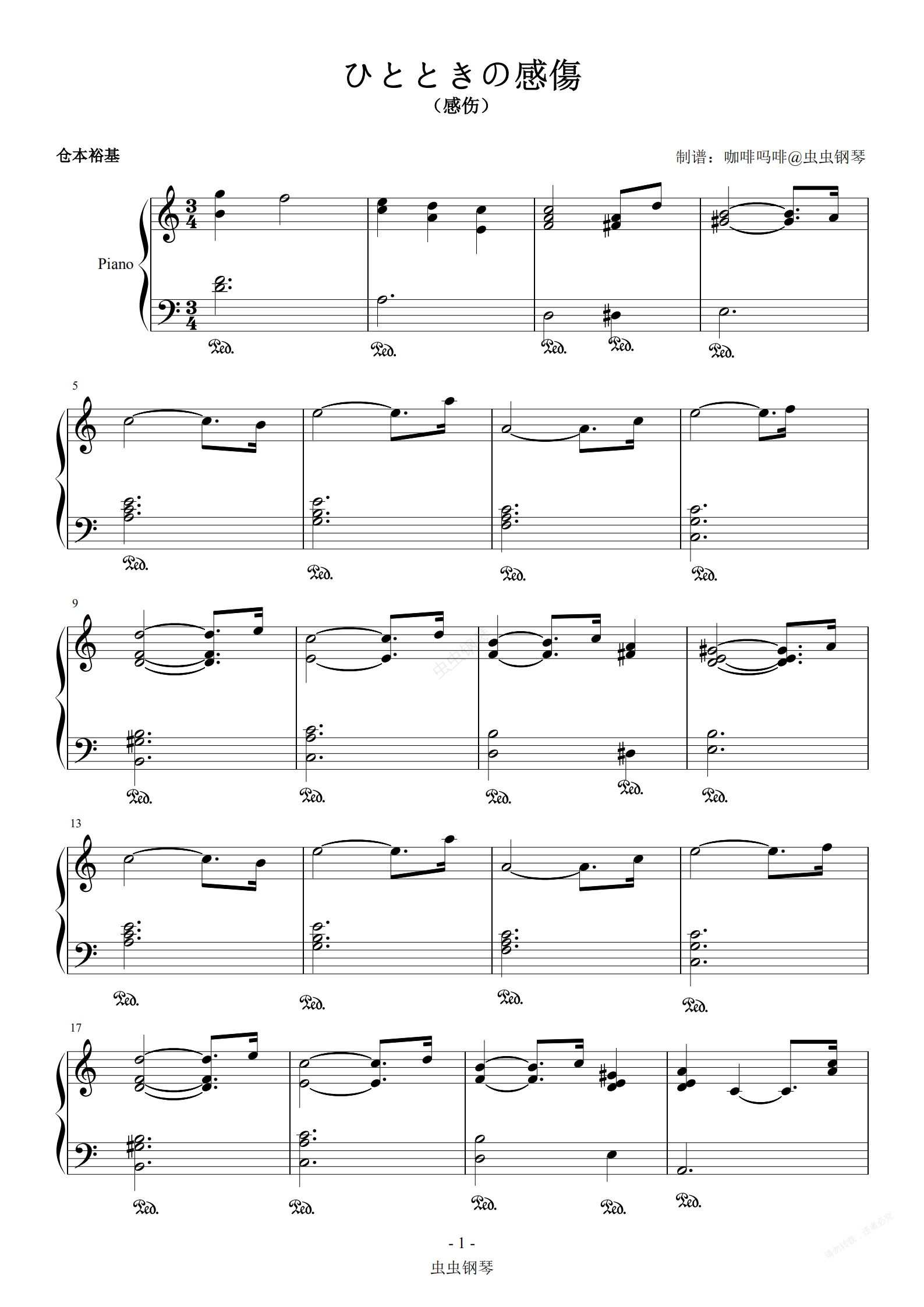 钢琴谱:ひとときの感傷-仓本裕基 C调钢琴谱