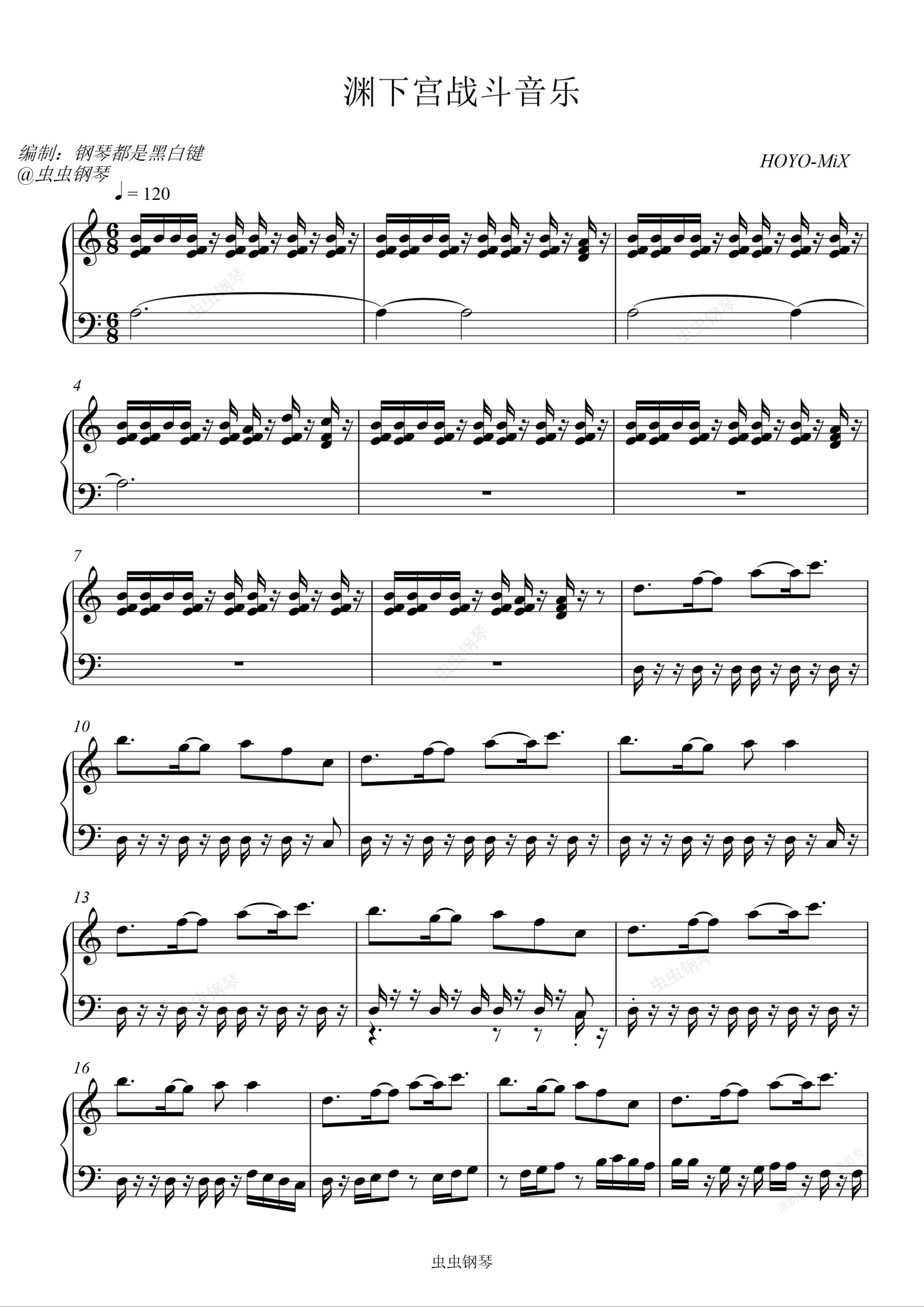 钢琴谱:免费谱【原神】渊下宫战斗音乐