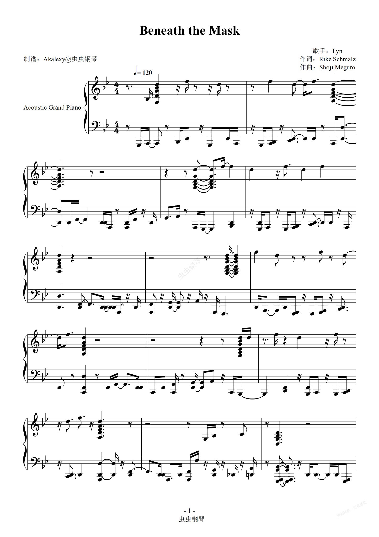 钢琴谱:女神异闻录5《Beneath the Mask》