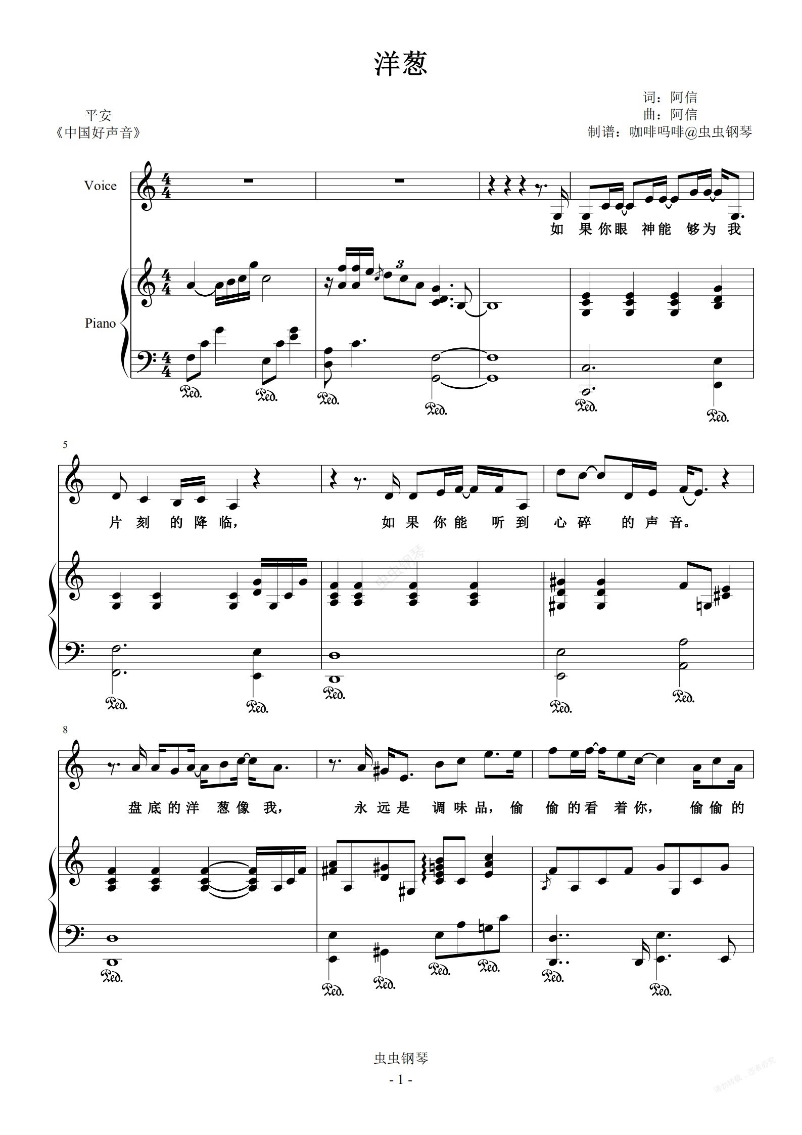 钢琴谱:洋葱-平安 钢琴伴奏谱