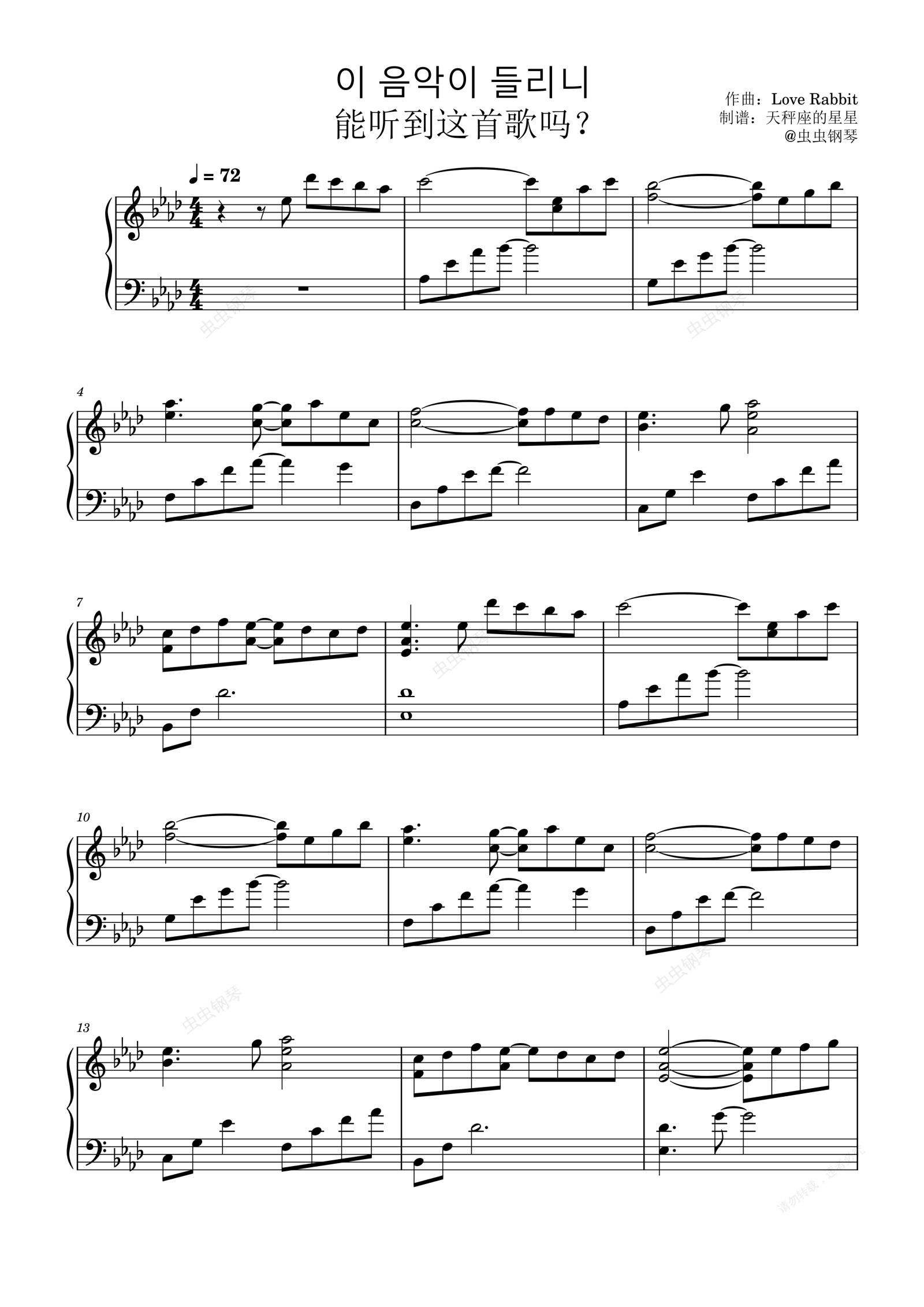 钢琴谱:이 음악이 들리니?(能听到这首歌吗?)