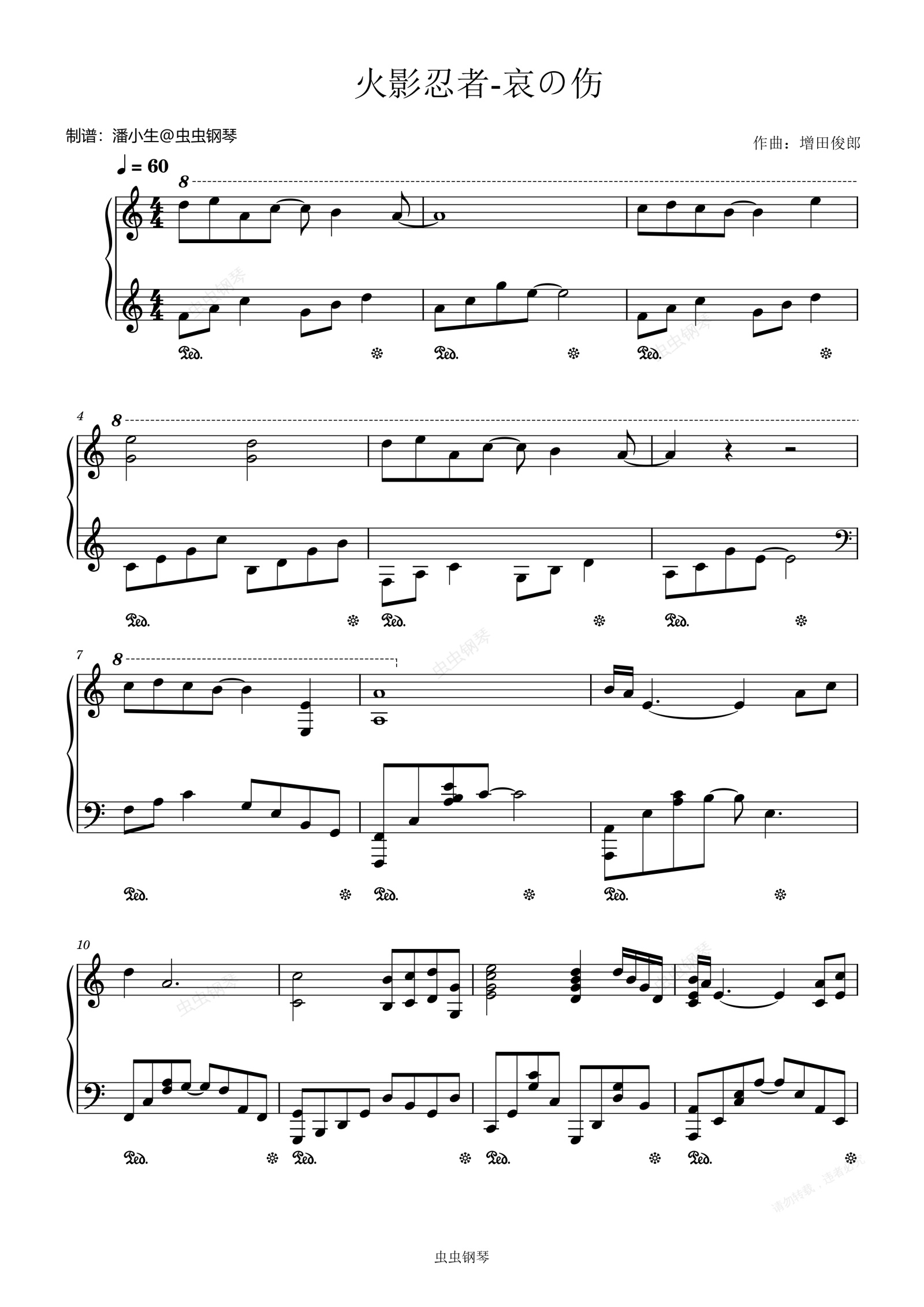 钢琴谱:火影忍者 哀と愁独奏版 钢琴五线谱 C调