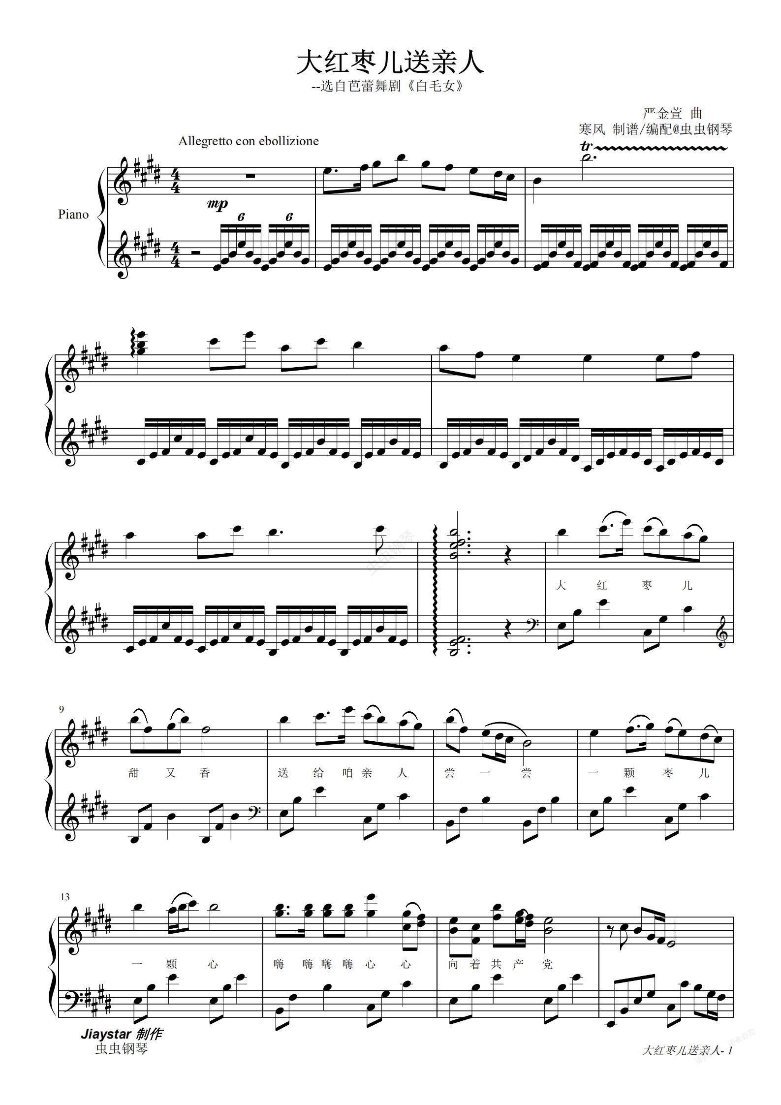 钢琴谱:大红枣儿送亲人