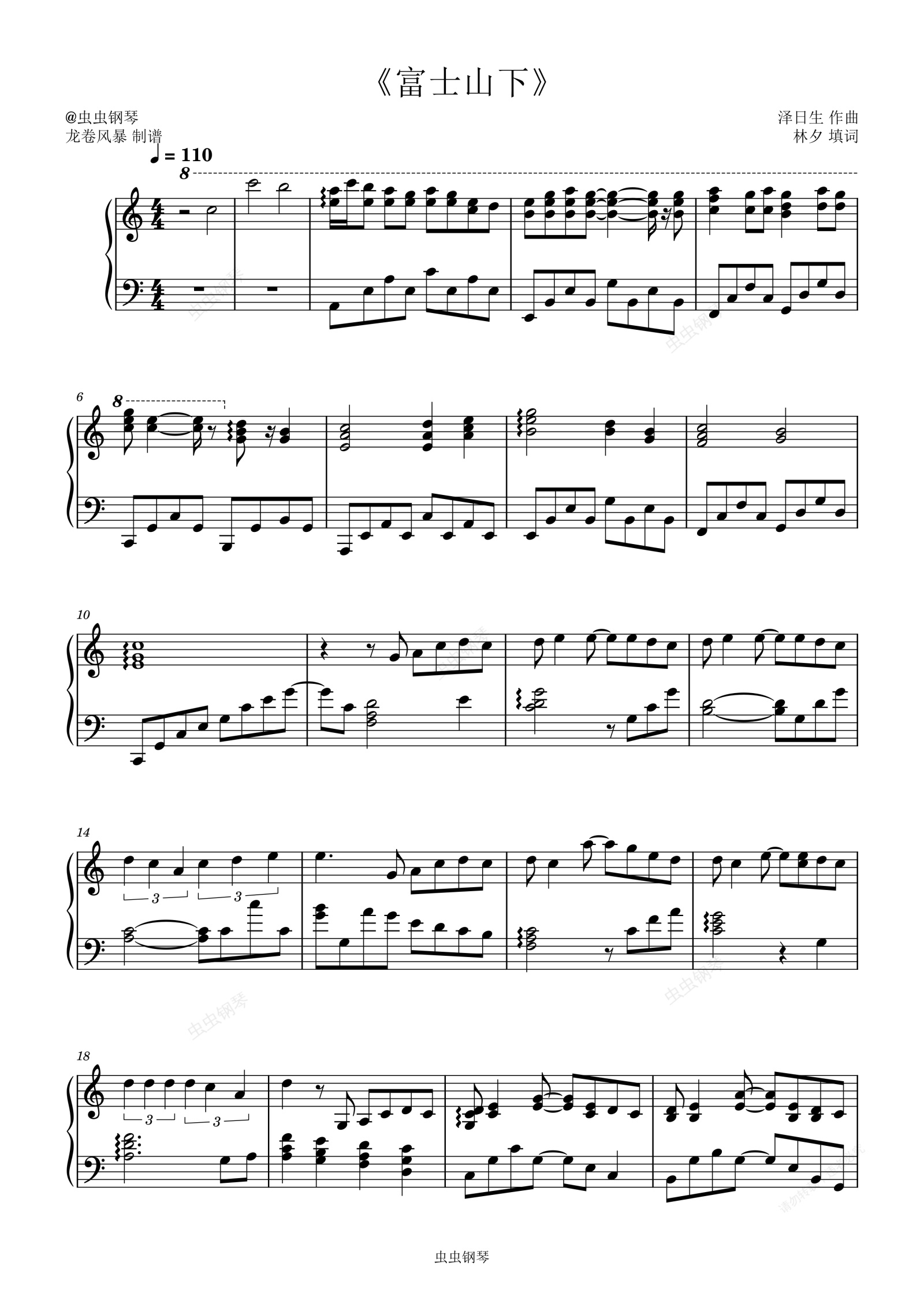 钢琴谱:《富士山下》陈奕迅-C调 『 SEAN 编配 』完美演奏版