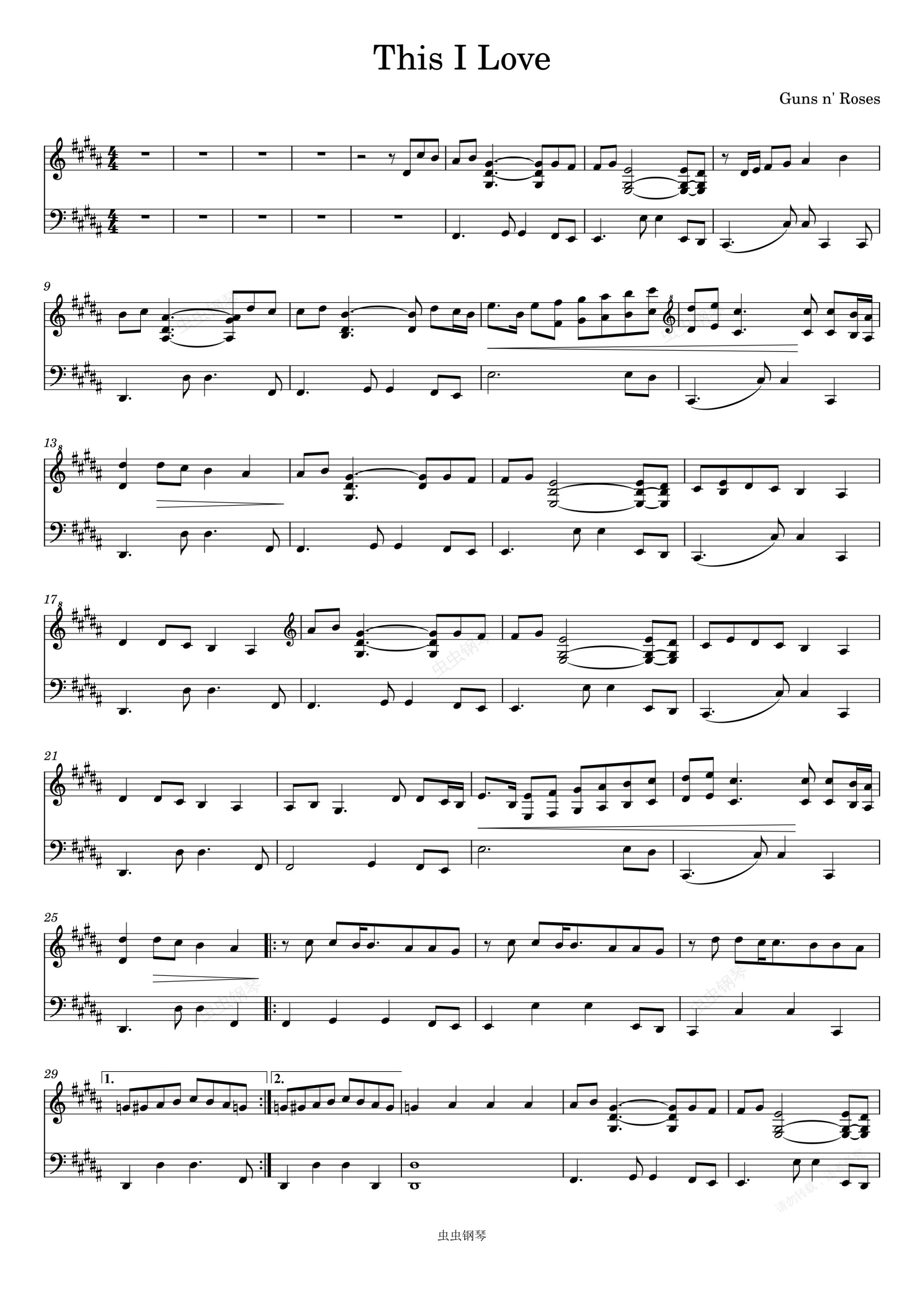 钢琴谱:This I Love-Guns n' Roses