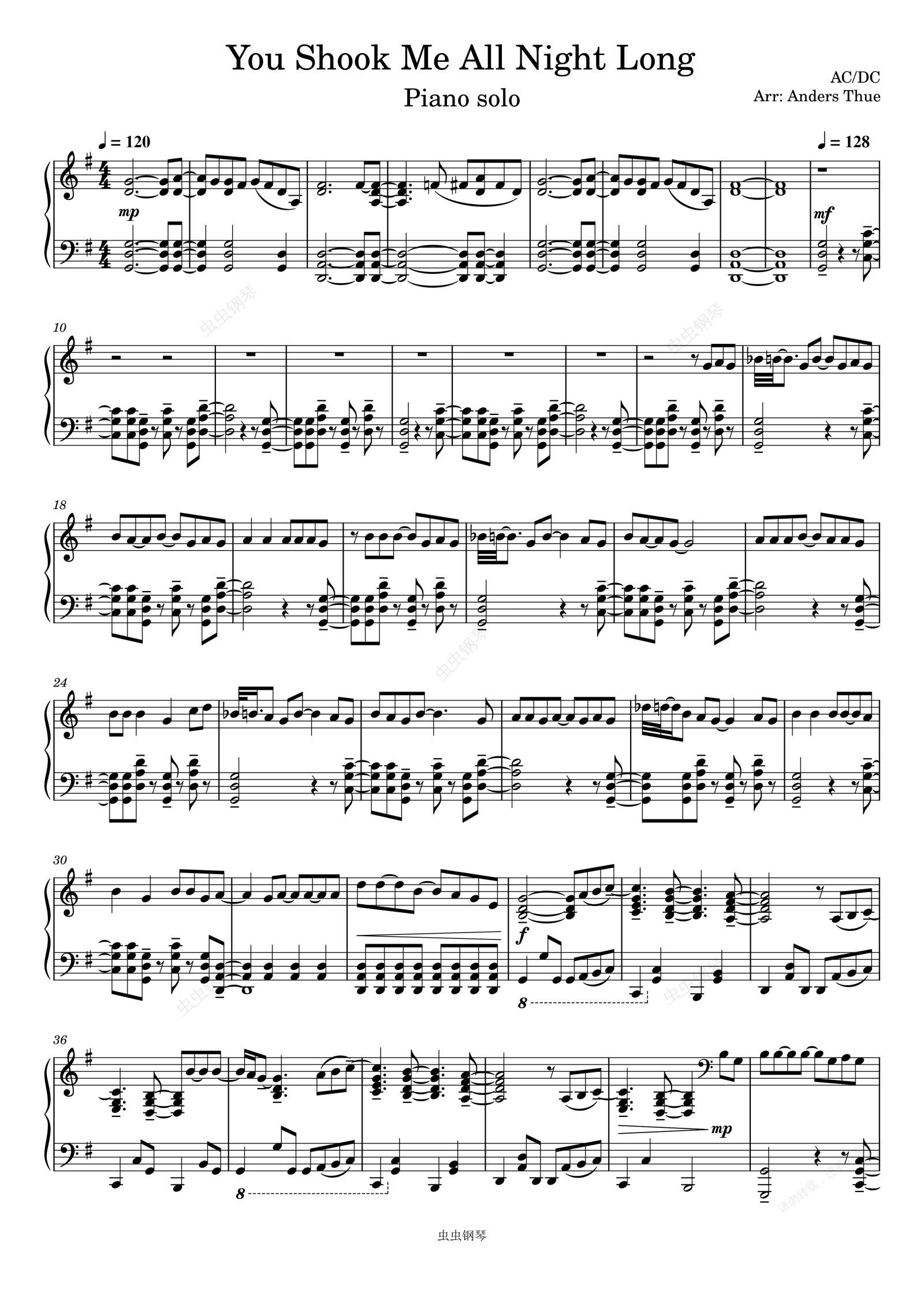 钢琴谱:You Shook Me All Night Long-AC/DC