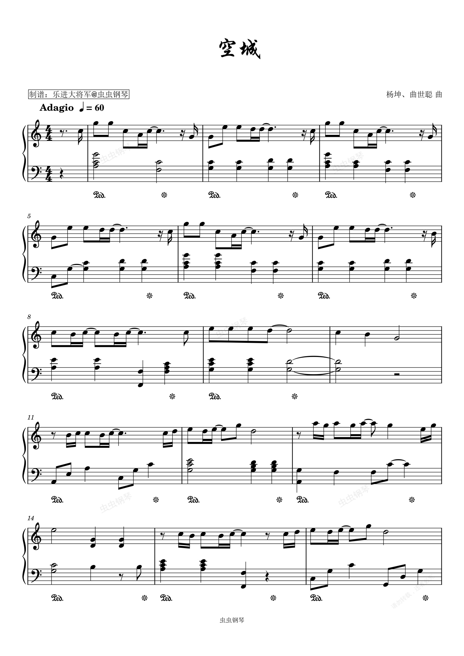钢琴谱:空城 C调简易版