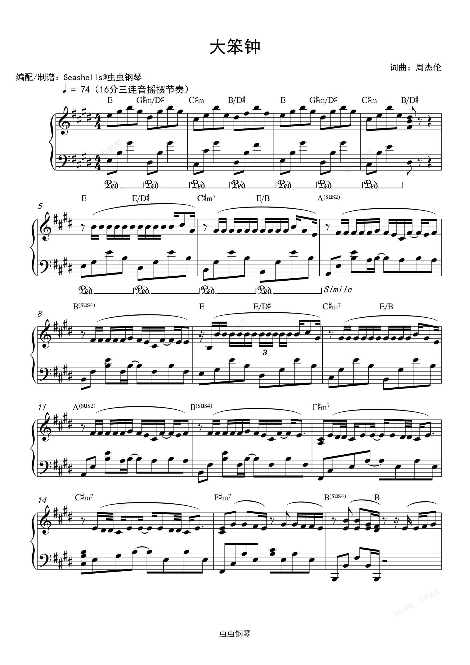 钢琴谱:周杰伦 - 《大笨钟》精编钢琴独奏
