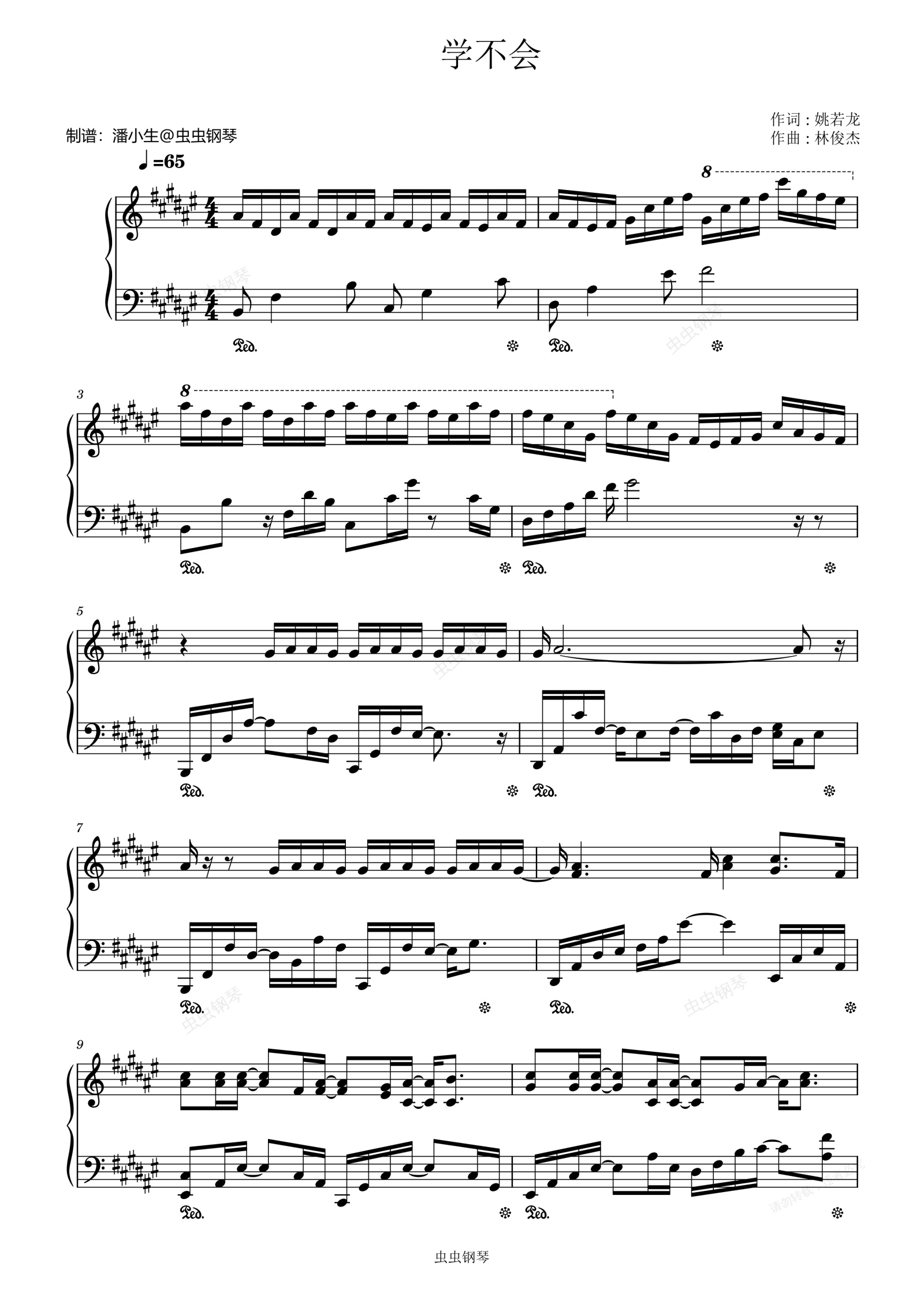 钢琴谱:学不会 钢琴谱 独奏版 升F调 原调 林俊杰
