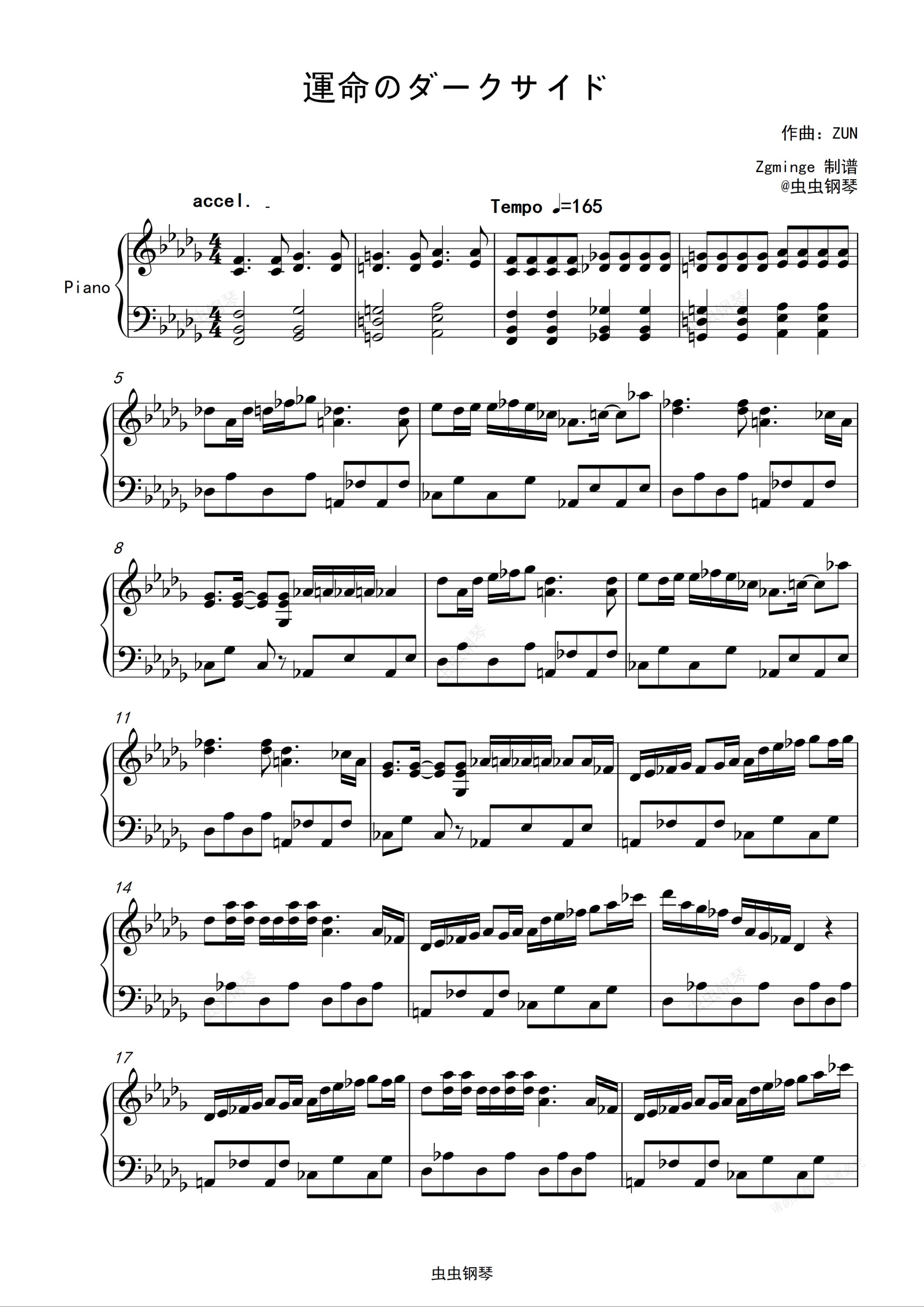 钢琴谱:運命のダークサイド 东方风神录