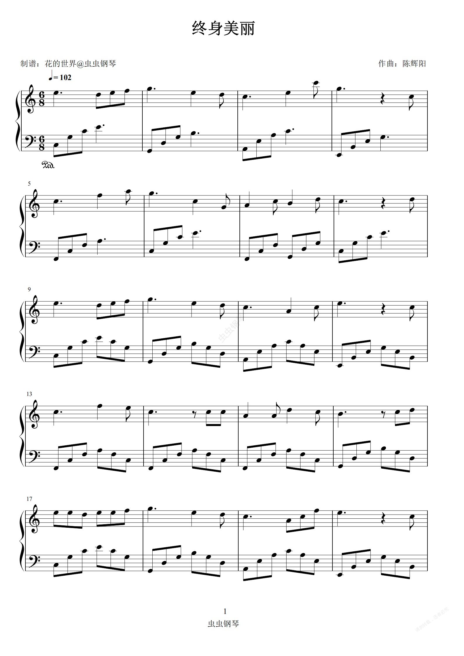 钢琴谱:终身美丽 C调简易版 郑秀文