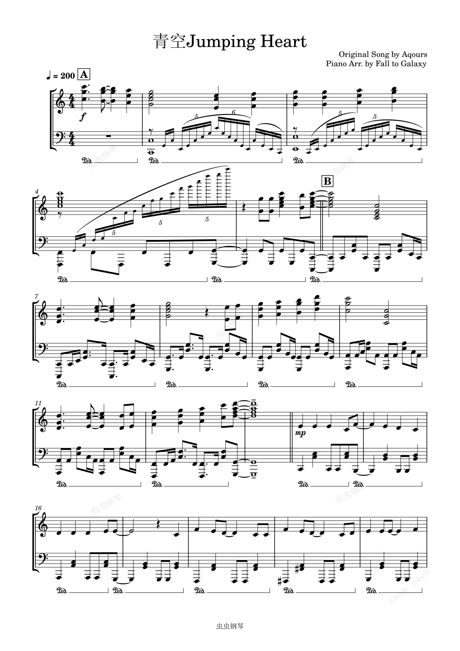钢琴谱:【超技钢琴改编】Aqours -  青空Jumping Heart