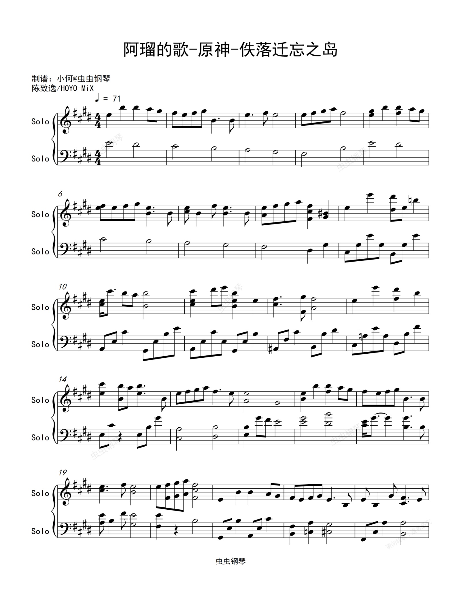 钢琴谱:阿瑠的歌-原神-佚落迁忘之岛
