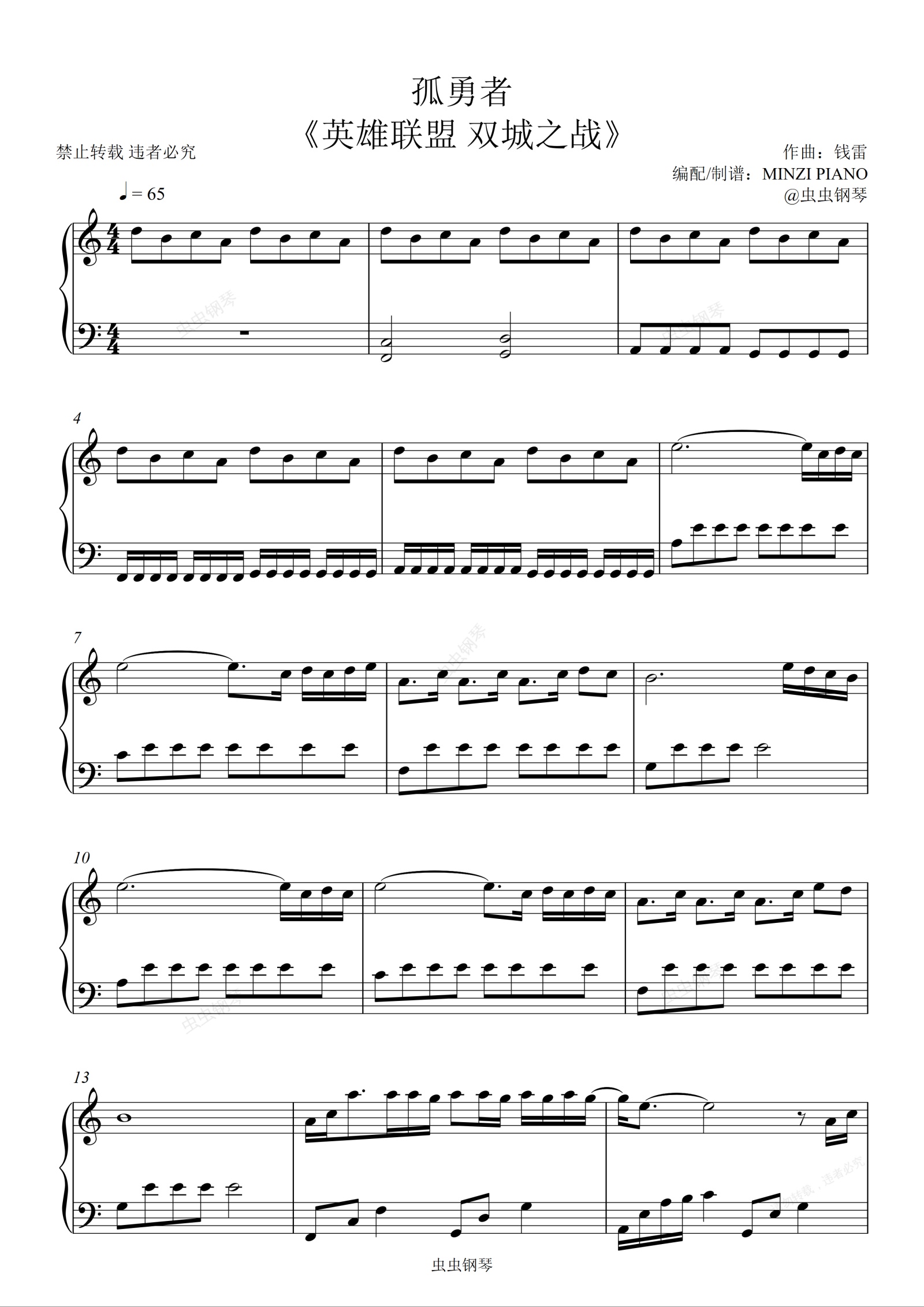 钢琴谱:陈奕迅《孤勇者》C调