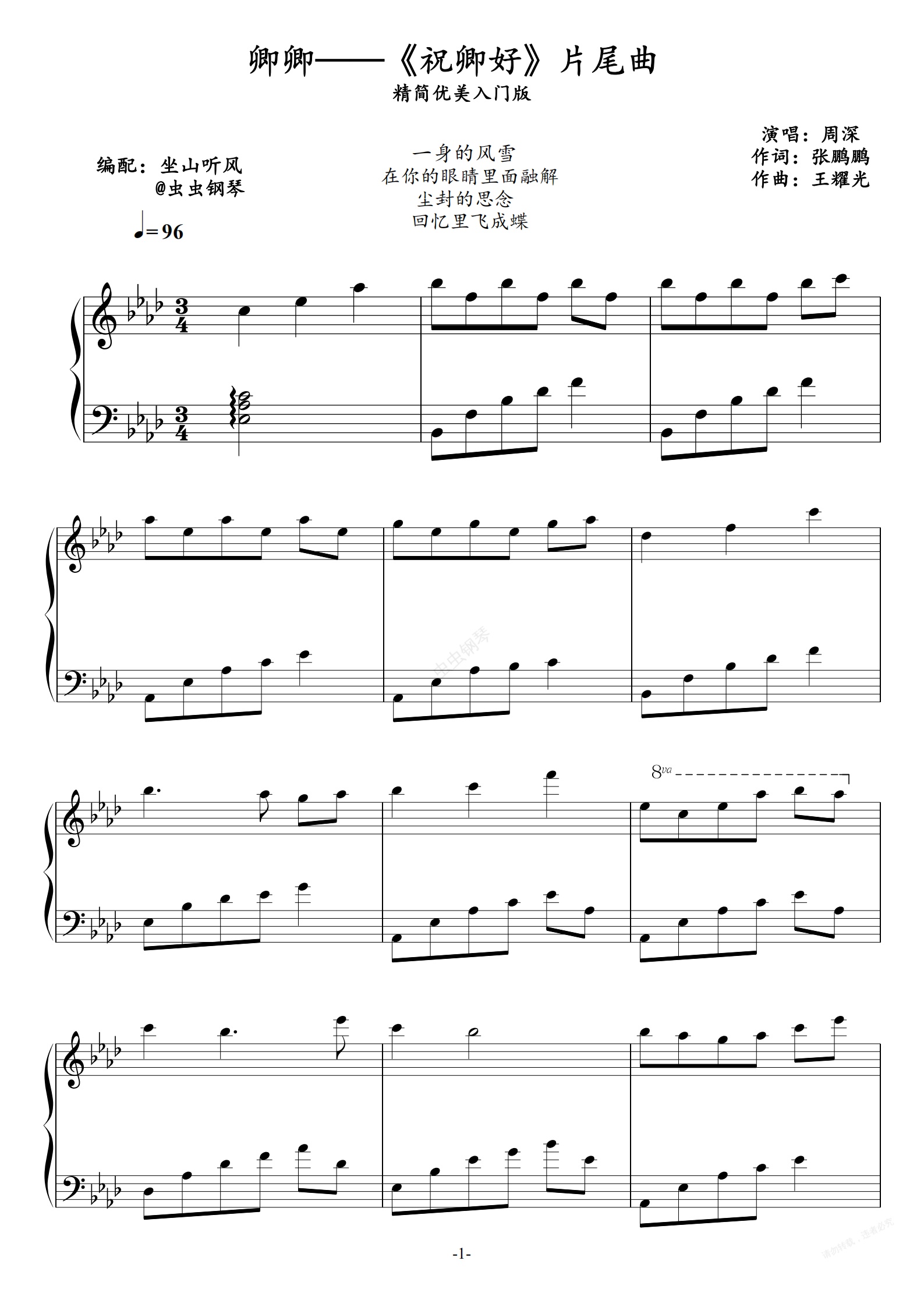 钢琴谱:卿卿——《祝卿好》片尾曲【周深】