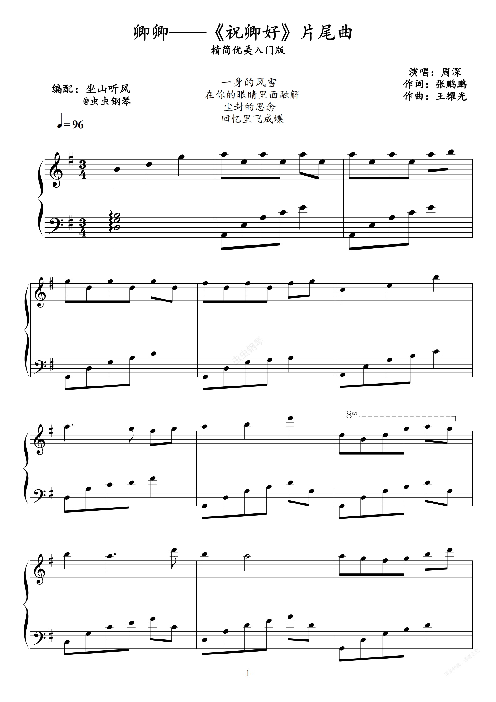 钢琴谱:卿卿——《祝卿好》片尾曲 【周深】